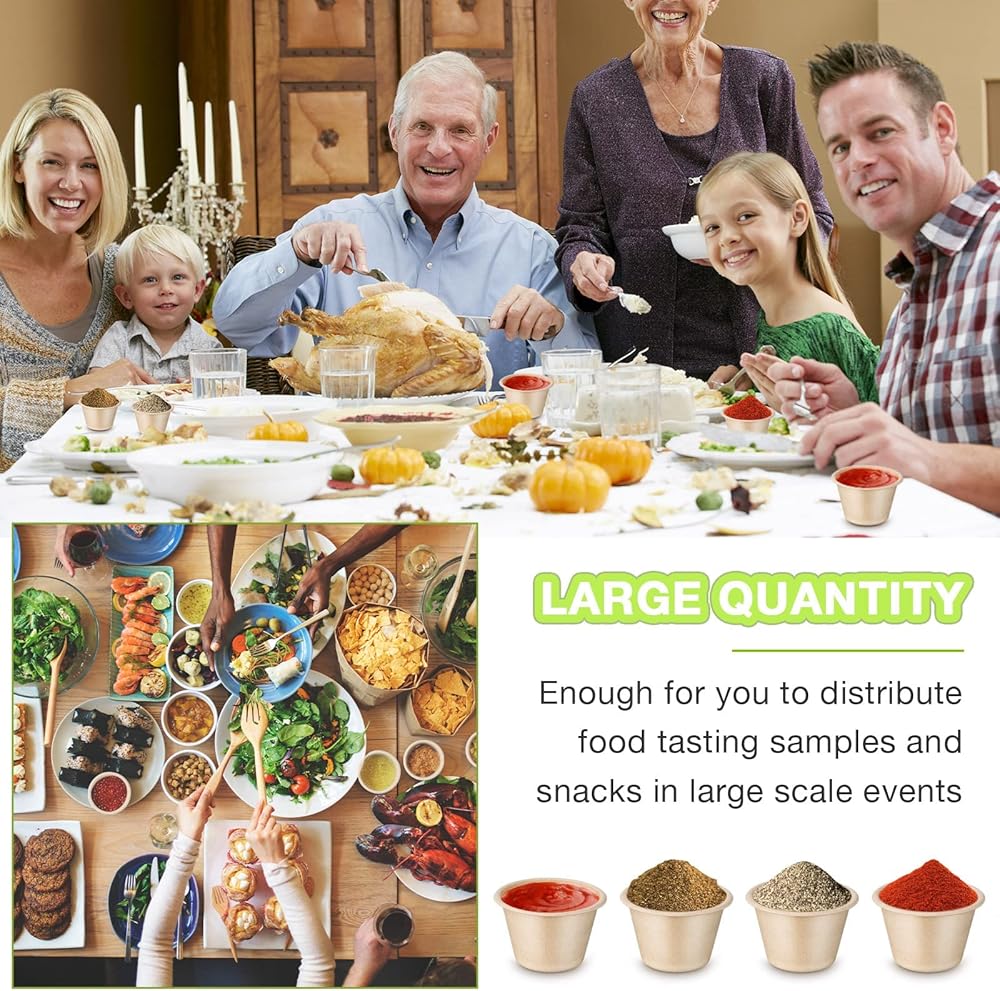توفر الوقت والطاقة: تعتمد أكواب العينات تصميمًا يمكن التخلص منها، ومقاومة للماء والزيوت، مما يساعدك على توفير الوقت والطاقة من الترتيب بعد العشاء أو الحفلات، مما يتيح لك المزيد من الوقت لمرافقة أفراد العائلة أو الاستمتاع بالحفلات