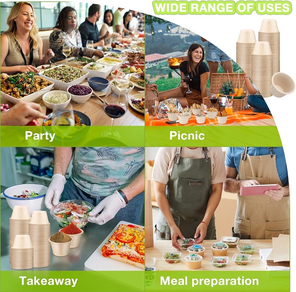 مجموعة واسعة من الاستخدامات: هذه الأكواب الورقية الصغيرة مناسبة للإقلاع المغلفة، مثل زيت الفلفل الحار وخل صلصة الصويا والثوم وما إلى ذلك، ويمكنها أيضًا أن تحتفظ بالنبيذ والمشروبات والعصير والجيلي والوجبات الخفيفة والكاتشب والزبدة والمربى ورطب السلطة والحلوى والزبادي والفلفل والبهارات الأخرى، الخيار المثالي لاستقبال الحفلات والمؤسسات وشاحنات الطعام الصغيرة السريعة. المطاعم، تجلب لك الكثير الراحة