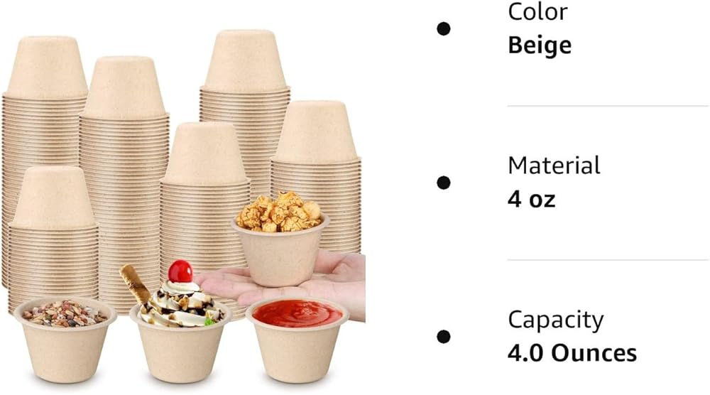 300 قطعة من أكواب ورقية صغيرة تستخدم لمرة واحدة بهارات الطعام وأكواب صغيرة وصلصة صغيرة وأوعية ورقية صغيرة لحفظ الوجبات الخفيفة والحلوى لتخزين الطعام (118 مل)