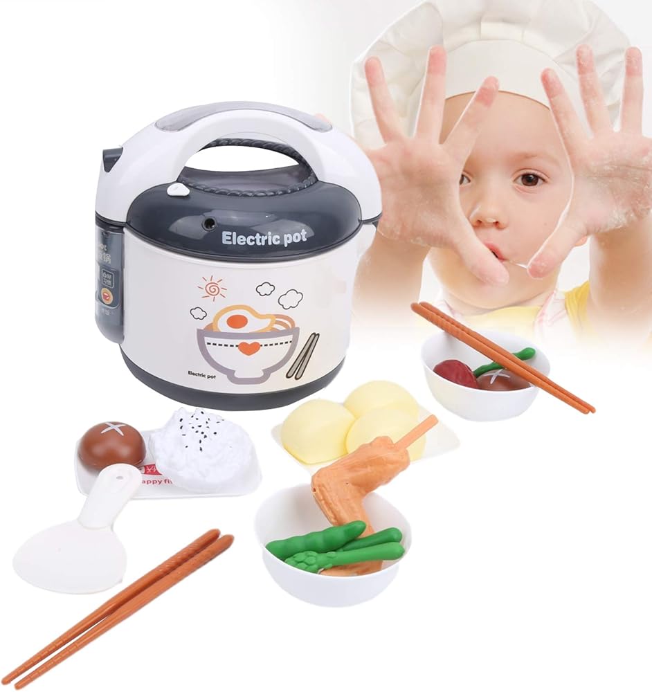 [PREMIUM QUALITY & SAFE MATERIAL] Crafted from lightweight and durable plastic, this kids rice cooker toy is easy to clean and features bright colors that captivate children's attention. The non- materials ensure safety while kids enjoy lifelike pretend cooking games with friends.