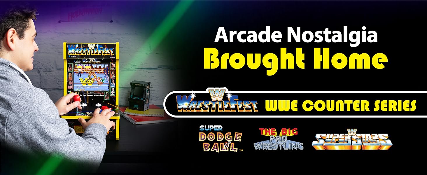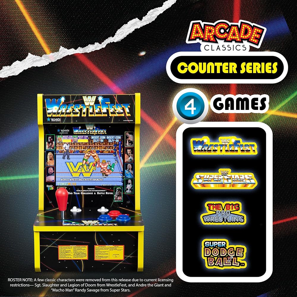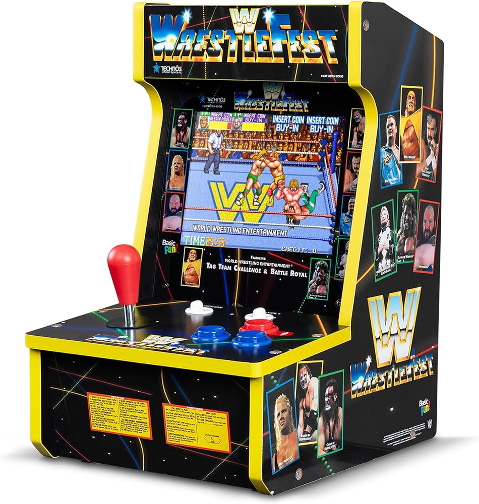 تجربة WWE Counter Arcade الكلاسيكية: العب من خلال ألعاب الآركيد المفضلة مثل WrestleFest وSuperStars وThe Big Pro Wrestling! وSuper Dodgeball، كل ذلك في خزانة واحدة للإثارة دون توقف.