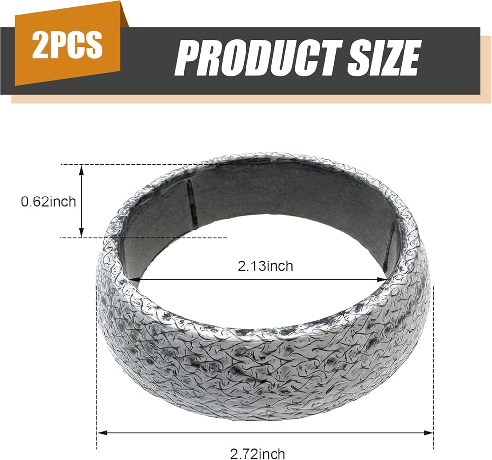 Hugwits 2 PCS 2.13" ID Exhaust Manifold Gasket, Graphite Leakproof Flange Donut Gasket, Prevent Leaking Between Manifold and Pipe, Universal Replacement for Most Cars (54mm)