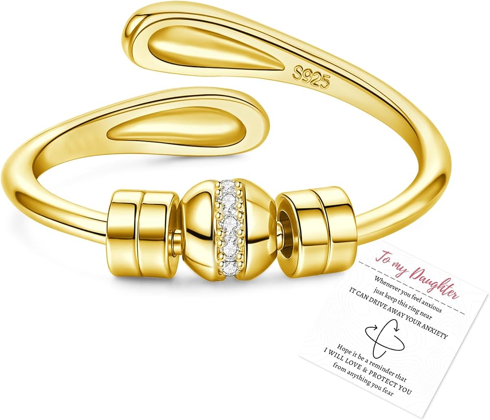 حلقات القلق من هييا للنساء، حلقات مطلية بالفضة الاسترلينية لابنتي، حلقة دوارة قابلة للتعديل مع خرزة كروية، حلقة تململ القلق للنساء، مجوهرات الإبهام لعيد الميلاد، عيد الميلاد مع بطاقة هدية