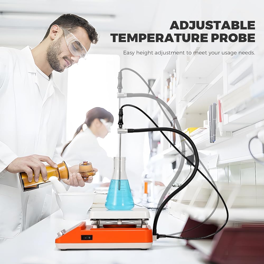 خلاط محرك مغناطيسي Bonvoisin مع لوحة LCD ومسبار درجة الحرارة وحامل دعم و6 قضبان تحريك ومسترجع 100-2000 دورة في الدقيقة بحد أقصى 6 لتر قدرة التحريك 110 فولت 500 وات
