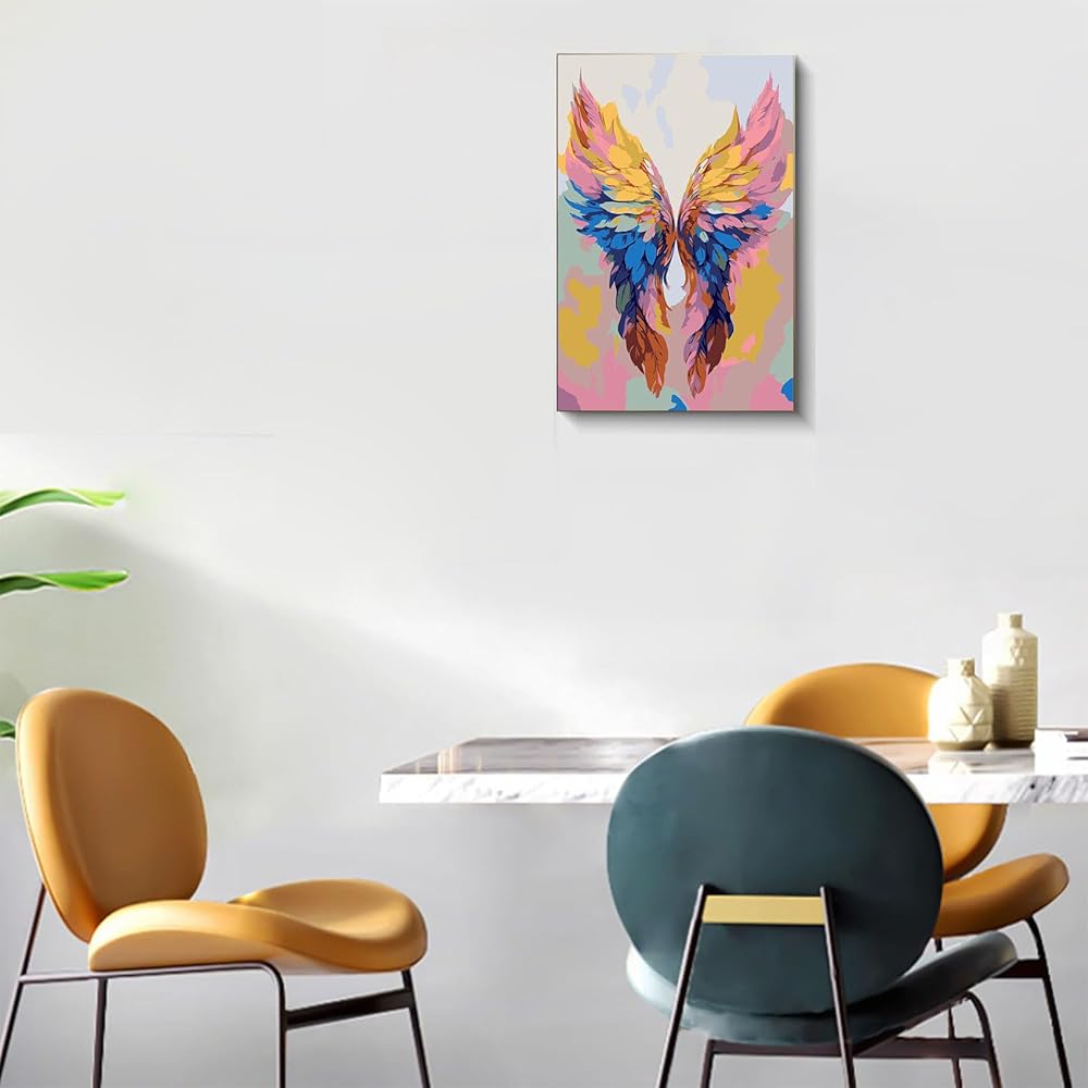 تصميمات الأجنحة الملونة: أجنحة منتشرة مفعمة بالحيوية مرسومة مسبقًا على اللوحات القماشية؛ استمتع بطلاء الأجنحة بالأرقام الفنية