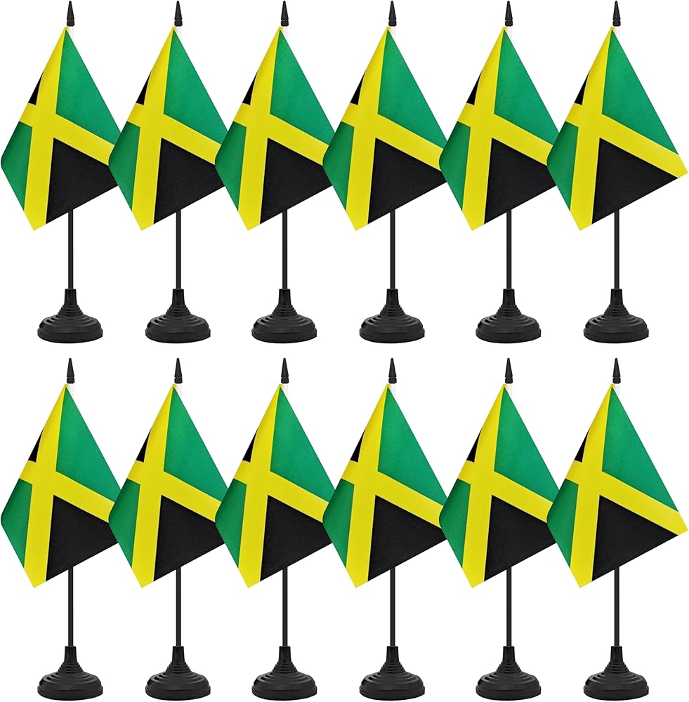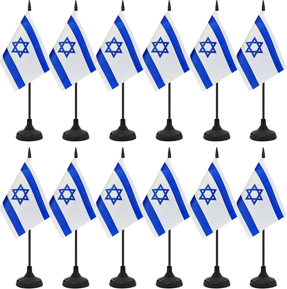 Flag size: 21 x 14 cm / 8.2 x 5.5 Inch. Pole size: 32cm / 12 inch. Top to bottom size after assembly: 13 inch. 12 flags per pack.