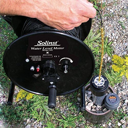 The Solinst Model 102 Water Level Meter uses a 10mm (0.375") probe that is constructed of stainless steel and includes 10 weights for use in greater depths. A braided copper outer conductor gives flexibility and a stranded stainless steel central conductor gives strength.