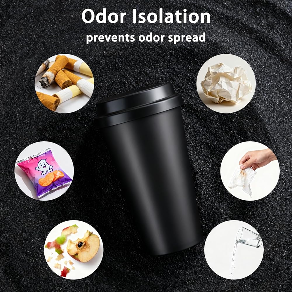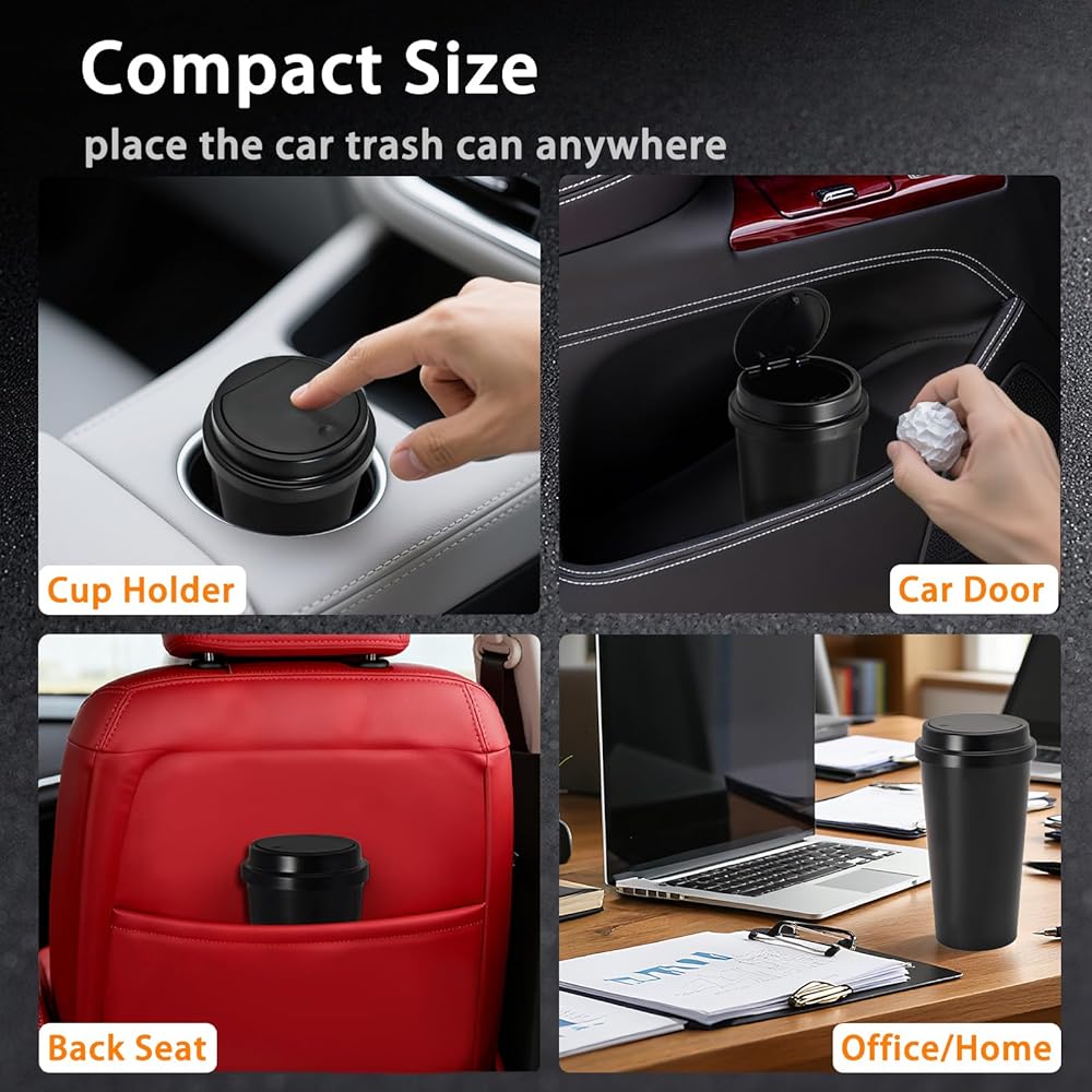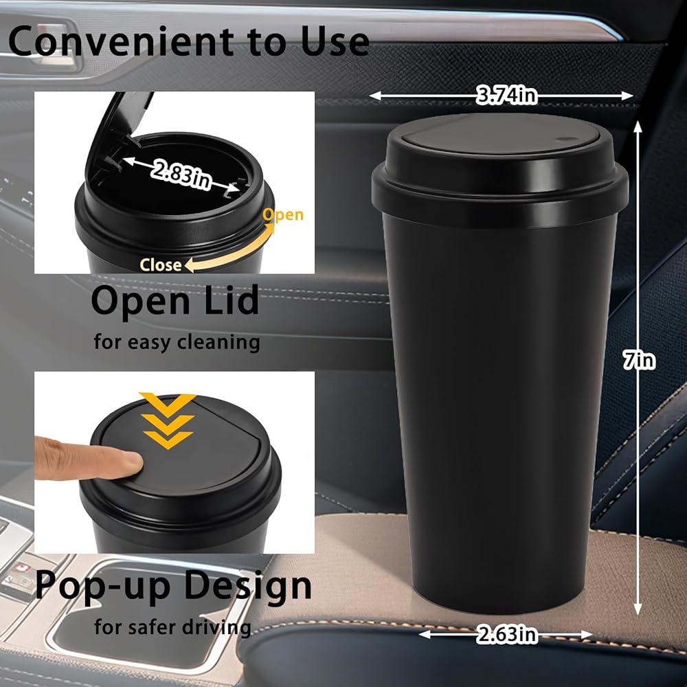 【استخدام سهل بلمسة واحدة】يتم فتح سلة مهملات السيارة الخاصة بنا بضغطة بسيطة على الغطاء، مما يسمح لك برمي القمامة في ثوانٍ. الغطاء العلوي يحبس الروائح، مما يحافظ على سيارتك منتعشة ونظيفة في جميع الأوقات.