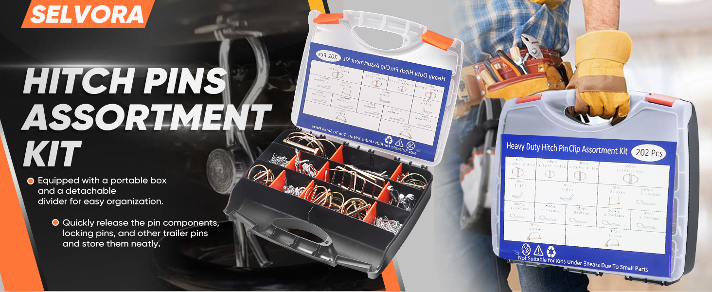 حقيبة محمولة: سهلة التنظيم والحمل، يتم تثبيت دبوس خطاف المقطورة في صندوق محمول يحمل علامة مع قسم قابل للفصل، مما يجعل من السهل عليك العثور بسرعة على المنتج الذي تحتاجه ويوفر لك وقت البحث.
