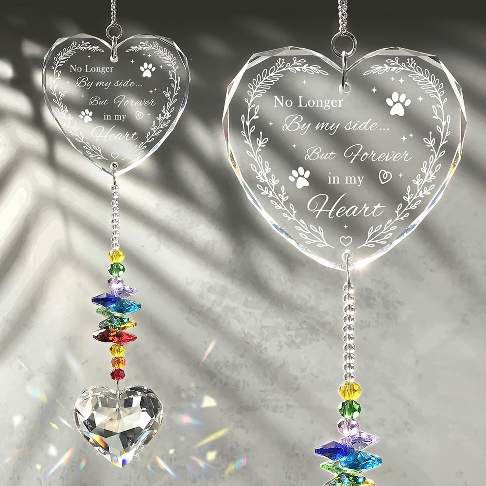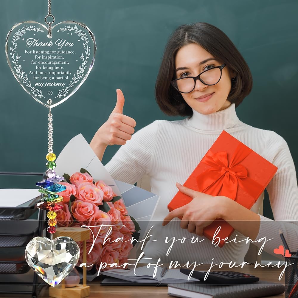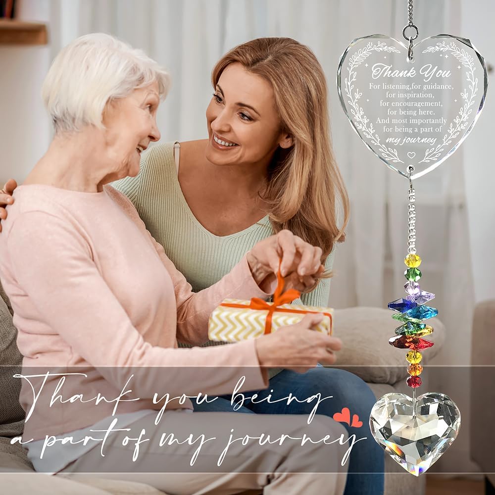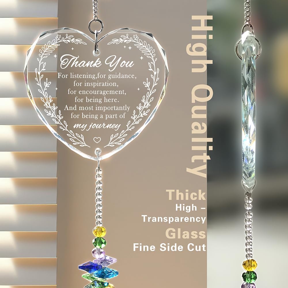 ❤【Crystal Suncatcher】This sparkling heart-shaped crystal suncatcher is crafted from premium high-transparency crystal with precise cutting and meticulous craftsmanship. Complemented by heart-shaped glass prisms print with meaningful inscriptions and metal chains, it radiates vibrant colors and dazzling brilliance. Each crystal exhibits a beautiful and unique spectrum of colors. Under intense illumination, these prisms capture and refract light into captivating luminous patterns.