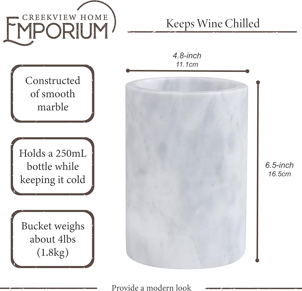 [قوي ومستقر]: مصنوع من الرخام الناعم لحمل زجاجة 250 مل بأمان مع الحفاظ على برودتها ؛ دلو التبريد زجاجة النبيذ الرخامي يزن حوالي 4 أرطال (1.8 كجم)