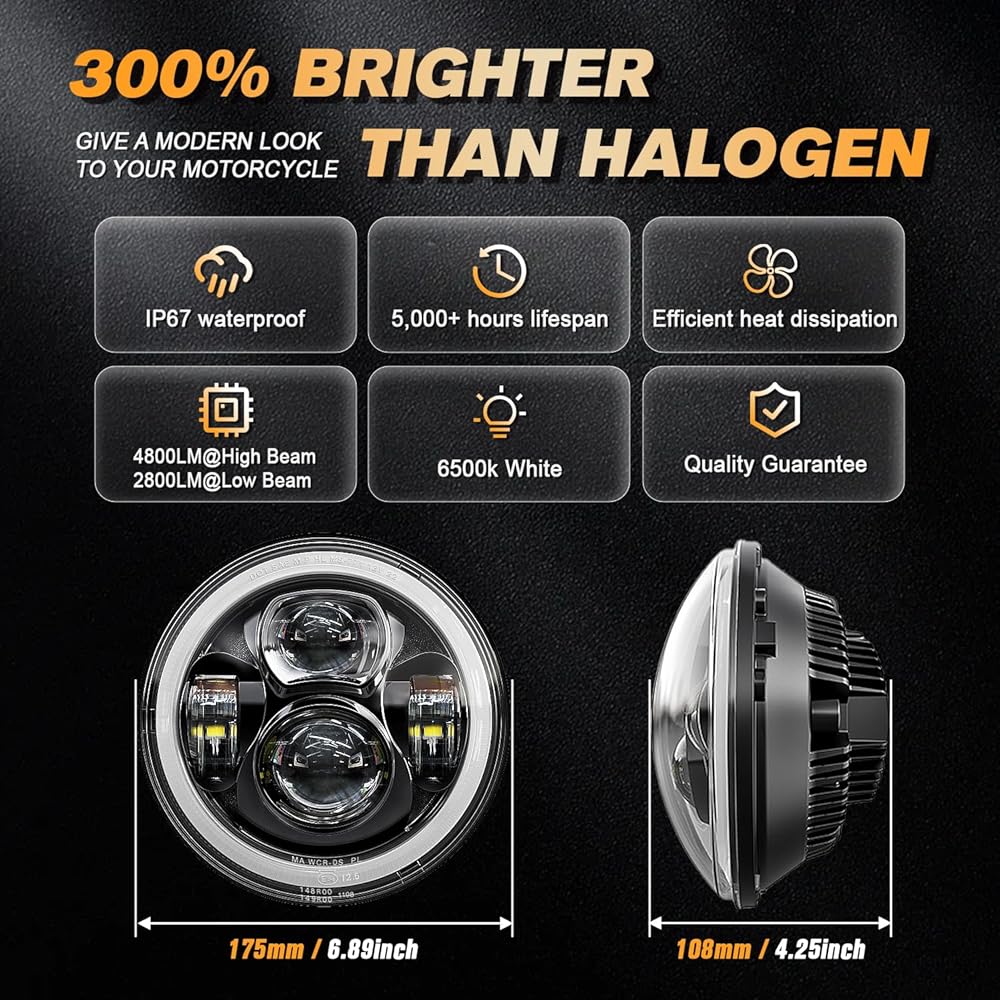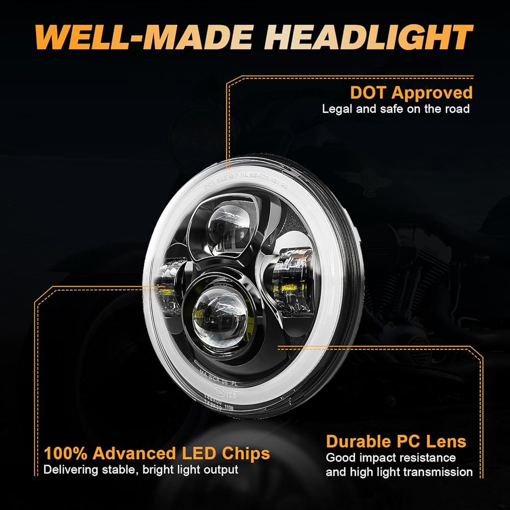 مناسب تمامًا للمصباح الأمامي مقاس 7 بوصات: جميع أسلاك المحول متضمنة. استبدل مصباح رأس الهالوجين الأصفر من صانع المعدات الأصلية. متوافق مع Electra Glide Classic/Ultra Classic 1994-2019، متوافق مع حامل Electra Glide/CVO/Ultra Limited 1994-2022، متوافق مع Road King 1994-2022، متوافق مع Softail Heritage/Deluxe/Slim/CVO 1994-2017، متوافق مع Street Glide 2006-2022، متوافق مع Tri Glide Ultra 2009-2022، متوافق مع Dyna Switchback FLD 2012-2016، متوافق مع Freewheeler 2015-2022.