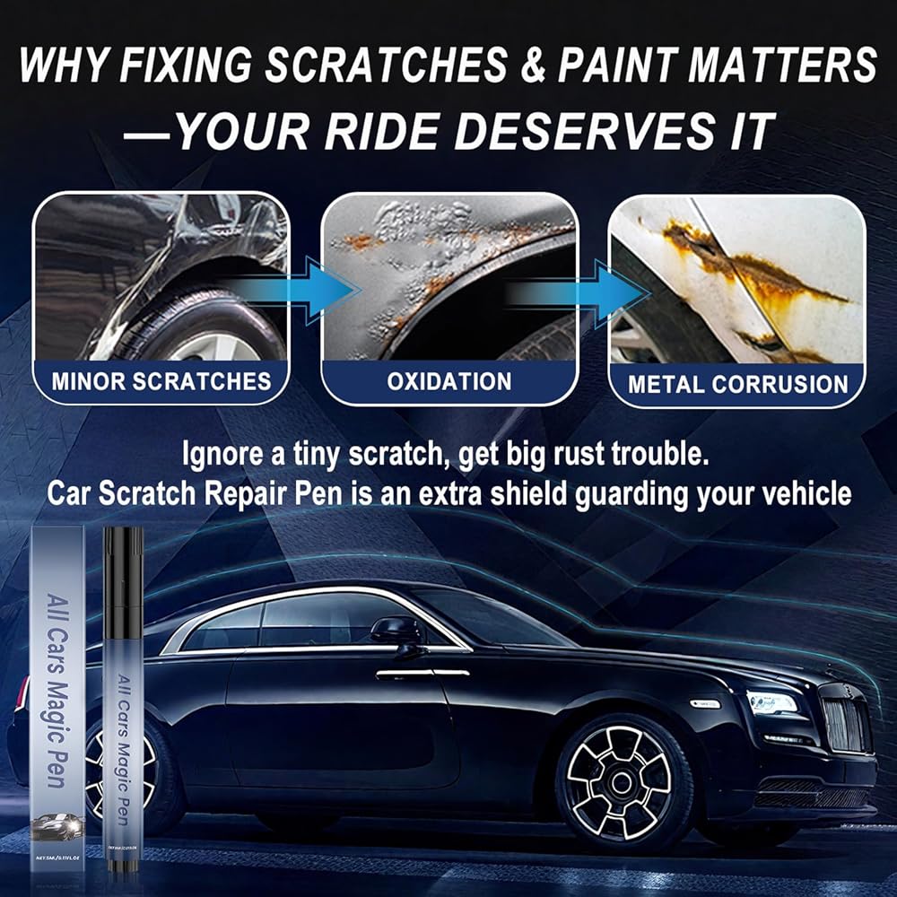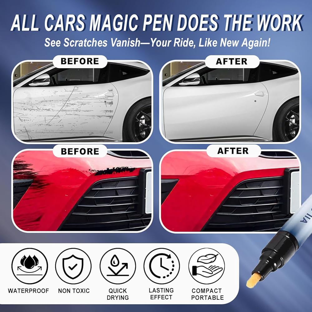 • مزيل خدوش السيارة الشامل: قل وداعًا للخدوش وتلف الطلاء الناتج عن المفاتيح أو الفروع أو ضربات الأبواب - سهل! يعمل على جميع ألوان طلاء السيارات، ويمتزج القلم السحري لجميع السيارات بسلاسة مع الطلاء الأصلي، ويغطي العلامات بشكل غير مرئي ويعيد سيارتك إلى حالتها الجديدة تمامًا