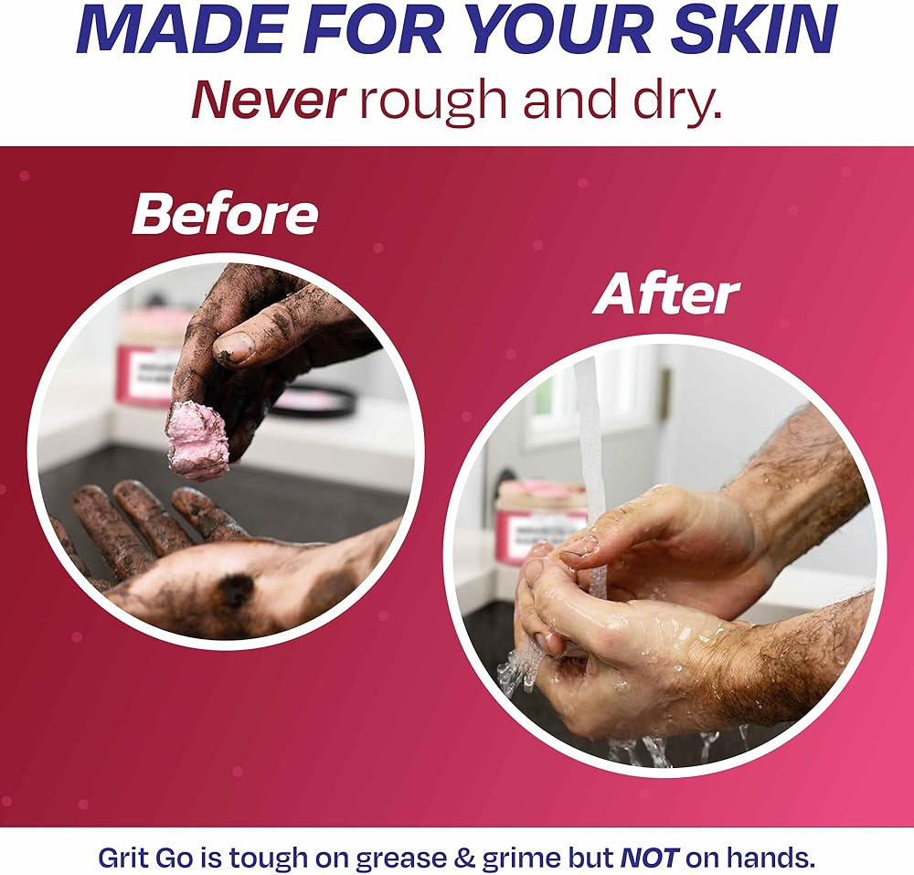 صابون اليد الصناعي Grit Go، مزيل الشحوم منظف اليد بالحجر الجيري المطحون يزيل الشحوم والزيت والقطران والصدأ من اليدين، مصنوع لميكانيكا السيارات وعمال البناء والأيدي العاملة، صنع في أمريكا
