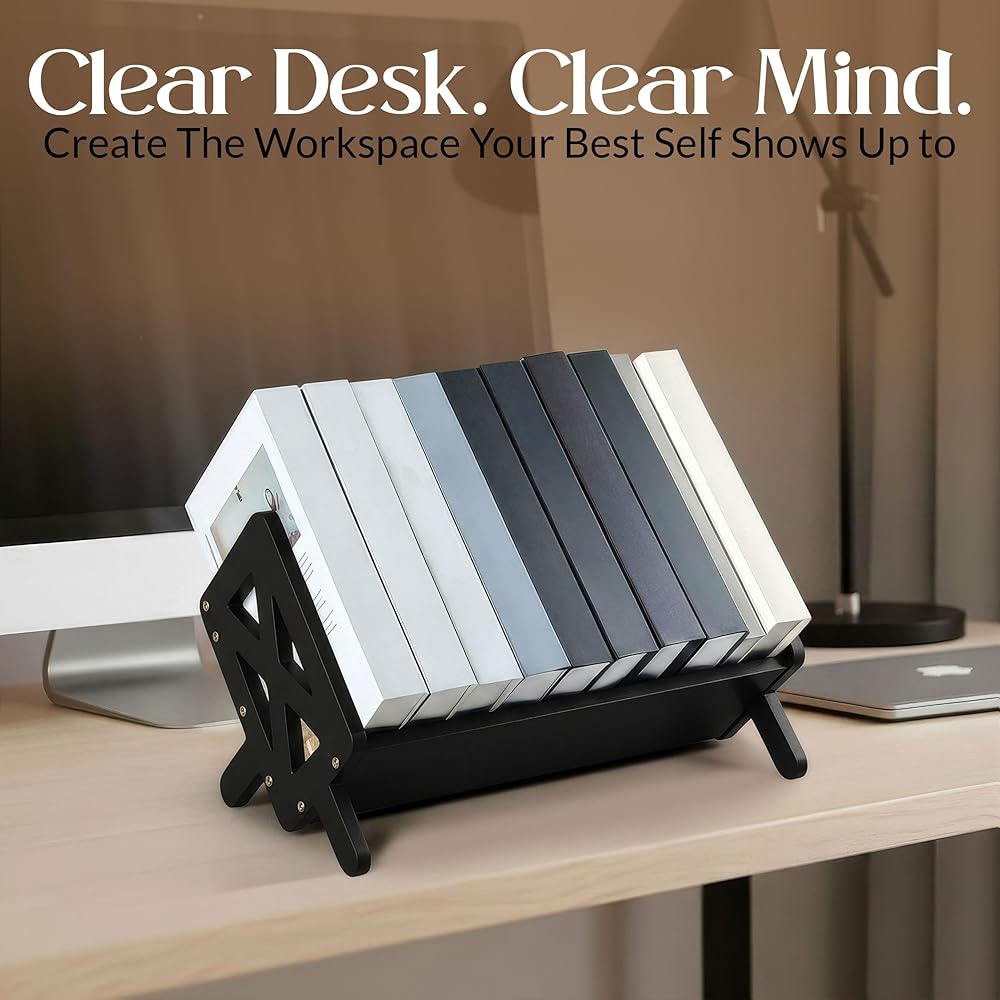 ملف رأسي مدمج - يعمل رف الكتب المكتبي هذا على تحسين المساحة عن طريق تكديس التخزين لأعلى بدلاً من الخارج. مثالي للمكاتب أو الاستوديوهات أو مساكن الطلبة التي تحتاج إلى طريقة نظيفة وحديثة لعرض الأساسيات في المناطق الضيقة.