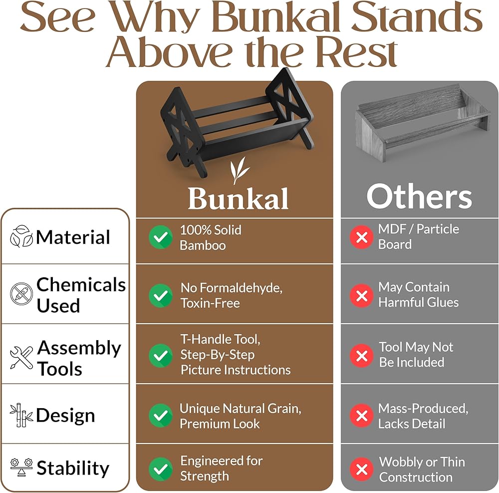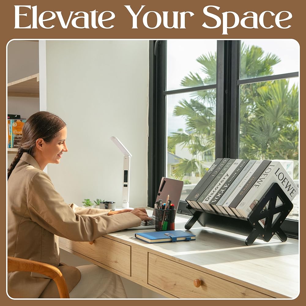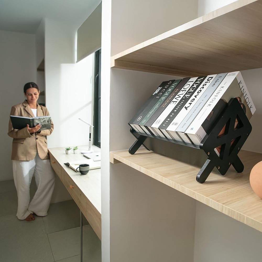 بناء متين - مصنوع من الخيزران الصلب، يوفر منظم رف الكتب المكتبي تصميمًا متينًا بحواف ناعمة ووزن متوازن لوضع ثابت على المكاتب أو الطاولات أو مساحات العمل الإبداعية.