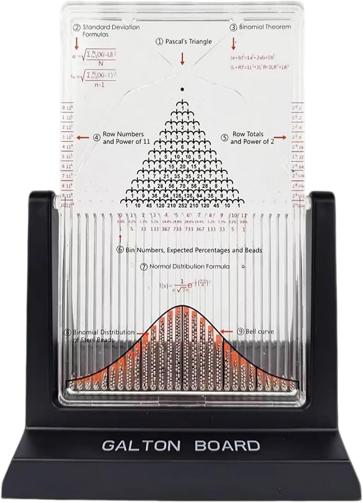 • 【Galton Board】The Dalton Board is a must-have educational device that uses carefully arranged pegs to guide falling beads into measurable statistical patterns, vividly illustrating probability and randomness.