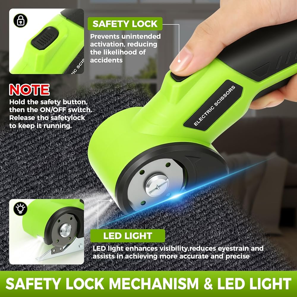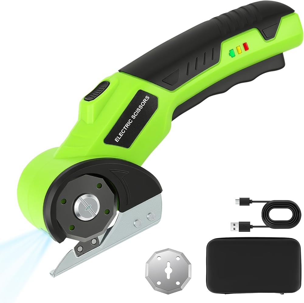 Transform your cutting tasks with these innovative 4V cordless electric scissors. Featuring dual titanium blades and a powerful motor, these scissors effortlessly slice through cardboard, fabric, and plastic materials with precision and ease. The ergonomic design includes a comfortable grip handle and a safety lock mechanism to prevent accidental activation. The rotary cutting system provides smooth, consistent cuts while reducing hand strain. This versatile tool comes complete with an extra blade for extended use, a USB charging cable for convenient power-ups, and a compact carrying case for easy storage and portability. Perfect for crafting, DIY projects, and everyday cutting needs, these electric scissors make an excellent addition to any toolbox. The built-in rechargeable battery ensures you're always ready to tackle your next project. Whether you're working on home improvements or creative endeavors, these electric scissors deliver reliable performance and professional results.