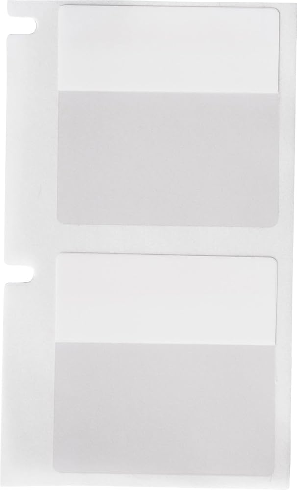 - Provided in a self-laminated format with a white printable zone and translucent overlaminating area to protect text