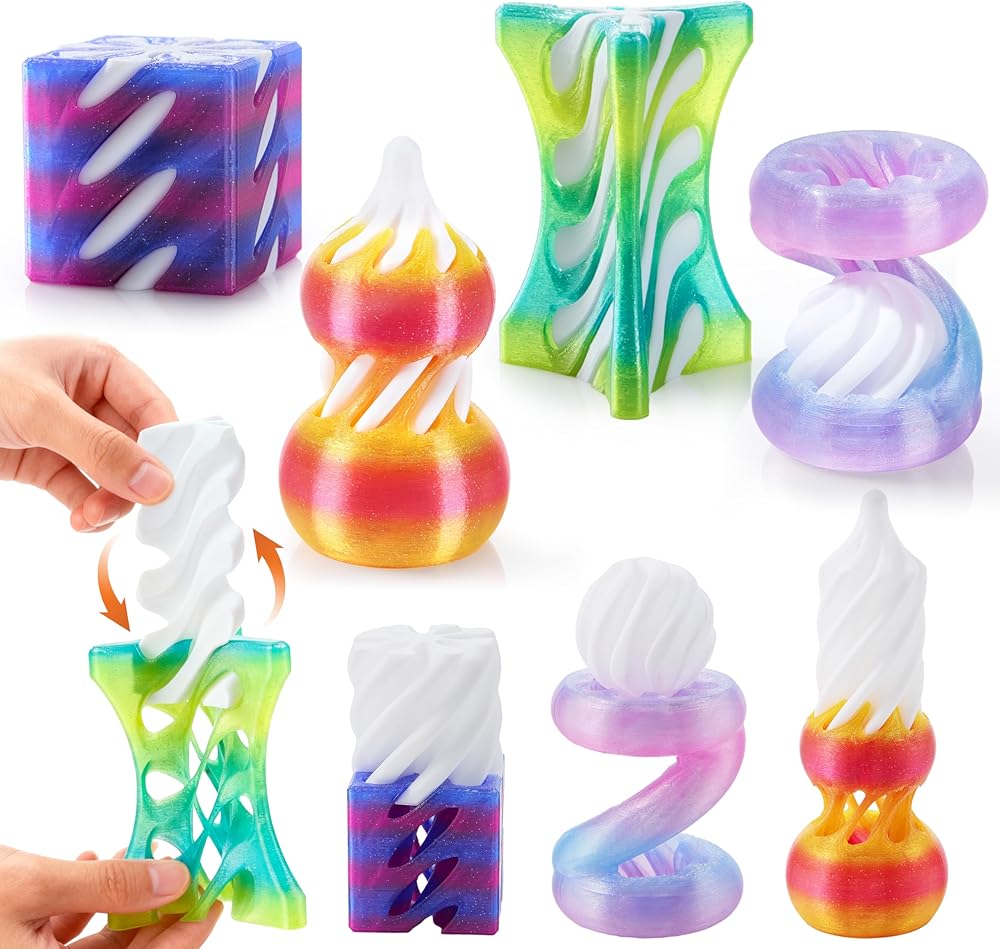 UNIQUE STRESS RELIEF FOR ALL: Looking for awesome fidget toys? These incredible 3d printed toys offer a uniquely satisfying and quiet sensory experience. They're fantastic 3d printed fidget toys for reducing anxiety, and are fidget toys adults love for improving focus at work or simply relaxing at home