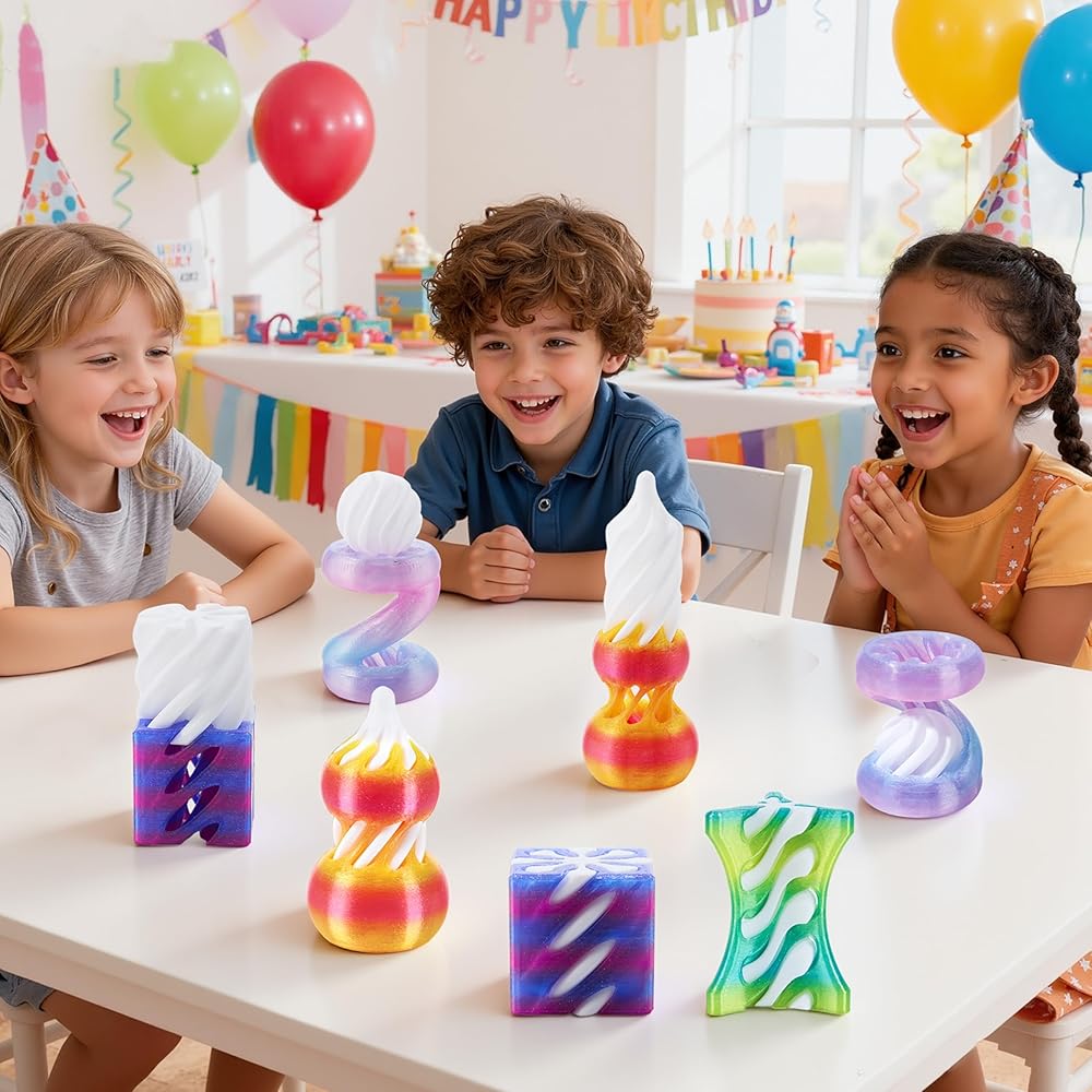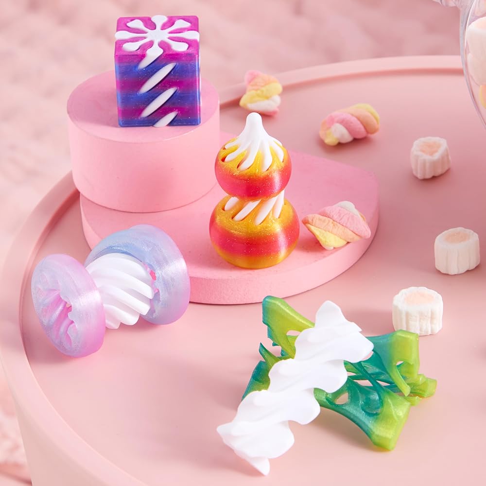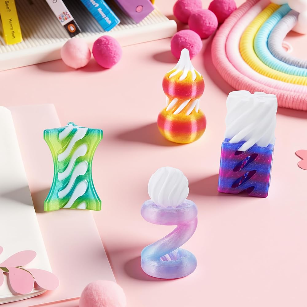 SUPER VALUE CONE SET: Get 4 pcs impossible cone fidgets toys! This awesome set includes 4 different shapes, each boasting beautiful, 4 different calming gradient pastel colors MESMERIZING & SMOOTH PLAY: Experience the magic of the impossible cone sensory toys! The design allows for incredibly silky smooth passthrough gameplay that feels amazing. It's a captivating multi-sensory delight that helps melt stress away and keeps your hands happily engaged PERFECT DESK OR TRAVEL TOY: These cones are the size for any setting. They look fantastic as stylish and colorful desk decor or are perfectly portable to slip into a bag or pocket for fidgeting fun wherever you go HIGH-QUALITY 3D PRINTED TOYS: Crafted with care from high-quality, durable materials using precise 3D printing techniques, these cones are built to last. They're ready for endless flipping, sliding, and satisfying fidgeting fun without wearing out UNIQUE STRESS RELIEF FOR ALL: Looking for awesome fidget toys? These incredible 3d printed toys offer a uniquely satisfying and quiet sensory experience. They're fantastic 3d printed fidget toys for reducing anxiety, and are fidget toys adults love for improving focus at work or simply relaxing at home