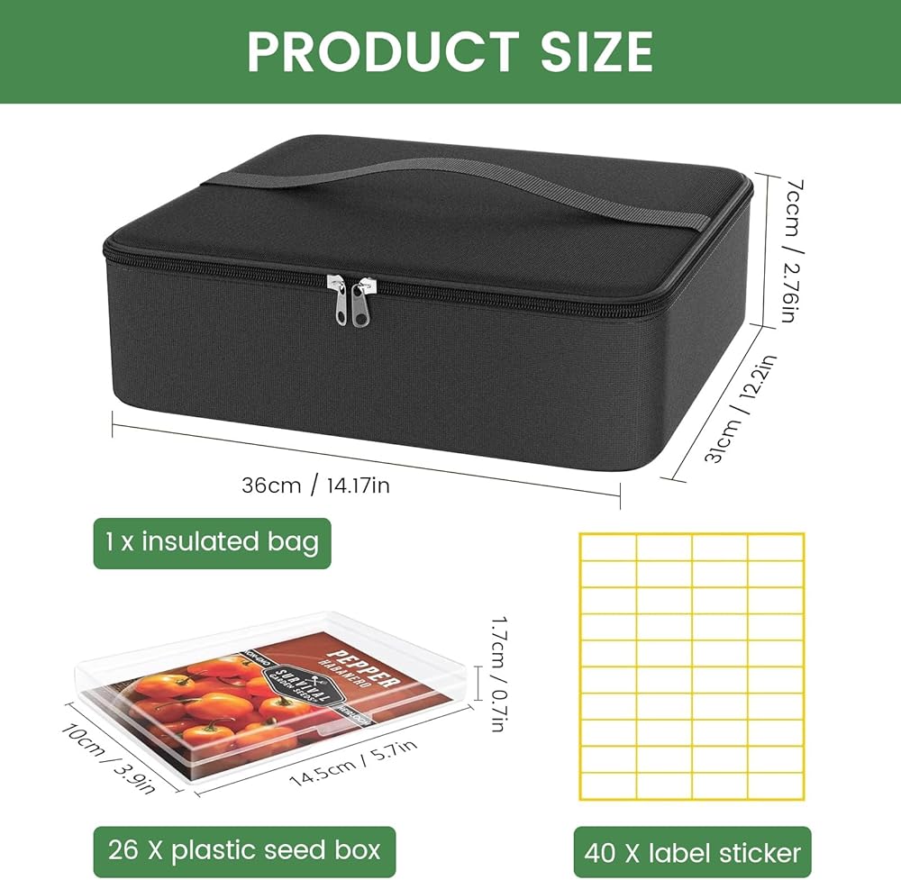 Our seed organizer storage box is not just any ordinary storage solution. It's a carefully crafted combination of functionality and durability. The set includes a black Oxford cloth aluminum foil insulated bag with a convenient handle and zipper. This insulated bag helps maintain the ideal temperature for your seeds, ensuring their viability and longevity.