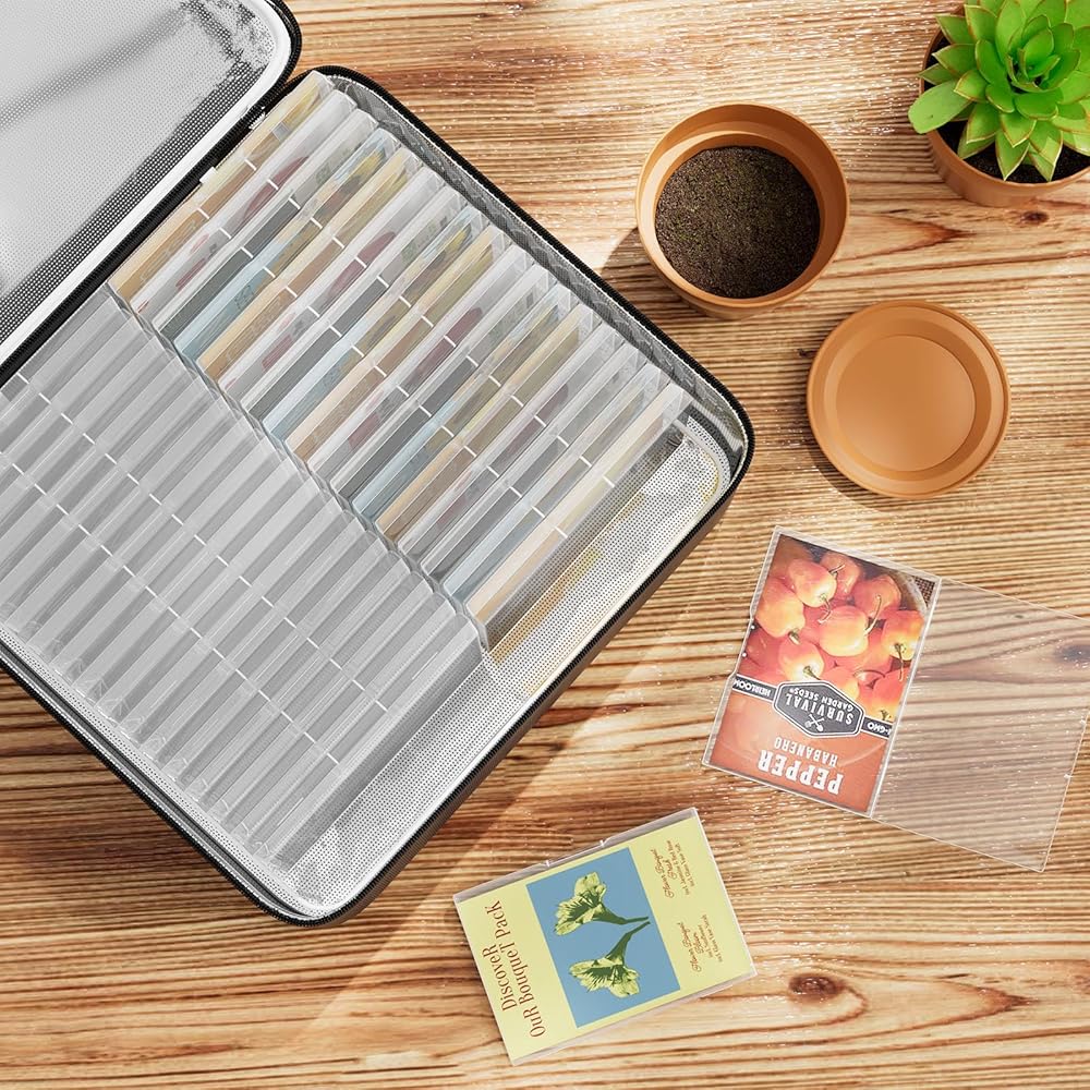 Space-Saving and Convenient Design: Designed for compact storage, this garden seed organizer is easy to stack and store, making it ideal for gardeners with limited space. The handle and zipper closure provide added convenience for on-the-go gardening.