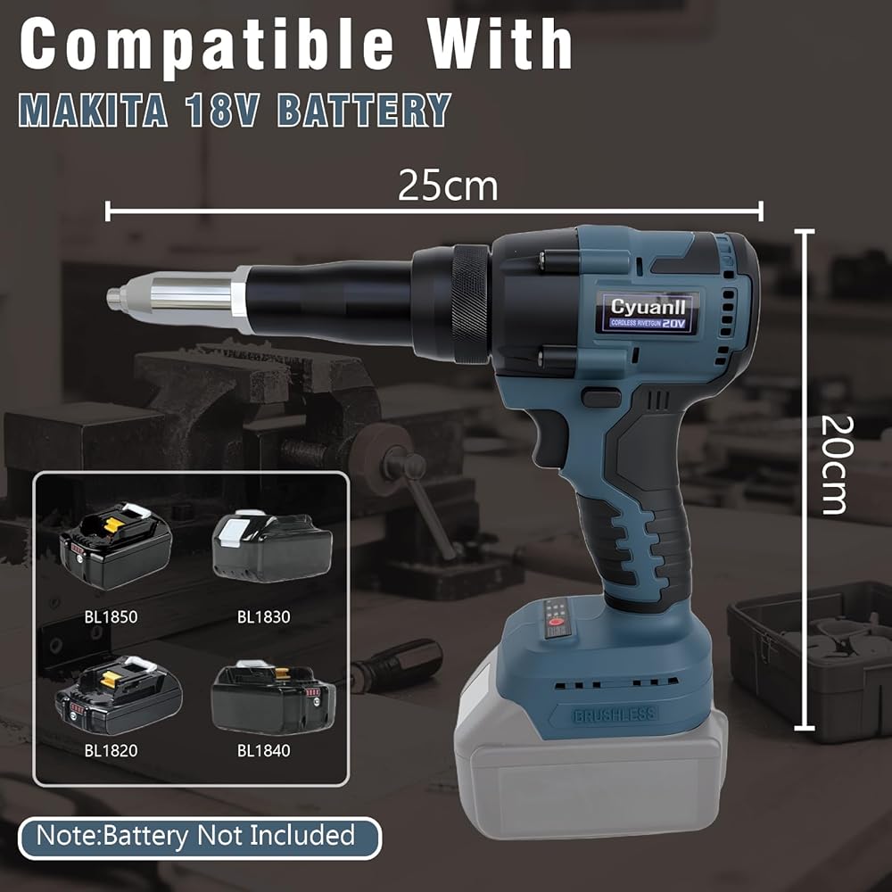 【Compatibility with 18V Li-ion Batteries】This cordless rivet gun is compatible with Milwaukee 18V batteries models (Suitable for use with 48-11-1820, 48-11-184048-11-1850, 48-11-1860 and more), providing flexibility and convenience. Please note: This product includes only the tool, not the battery.