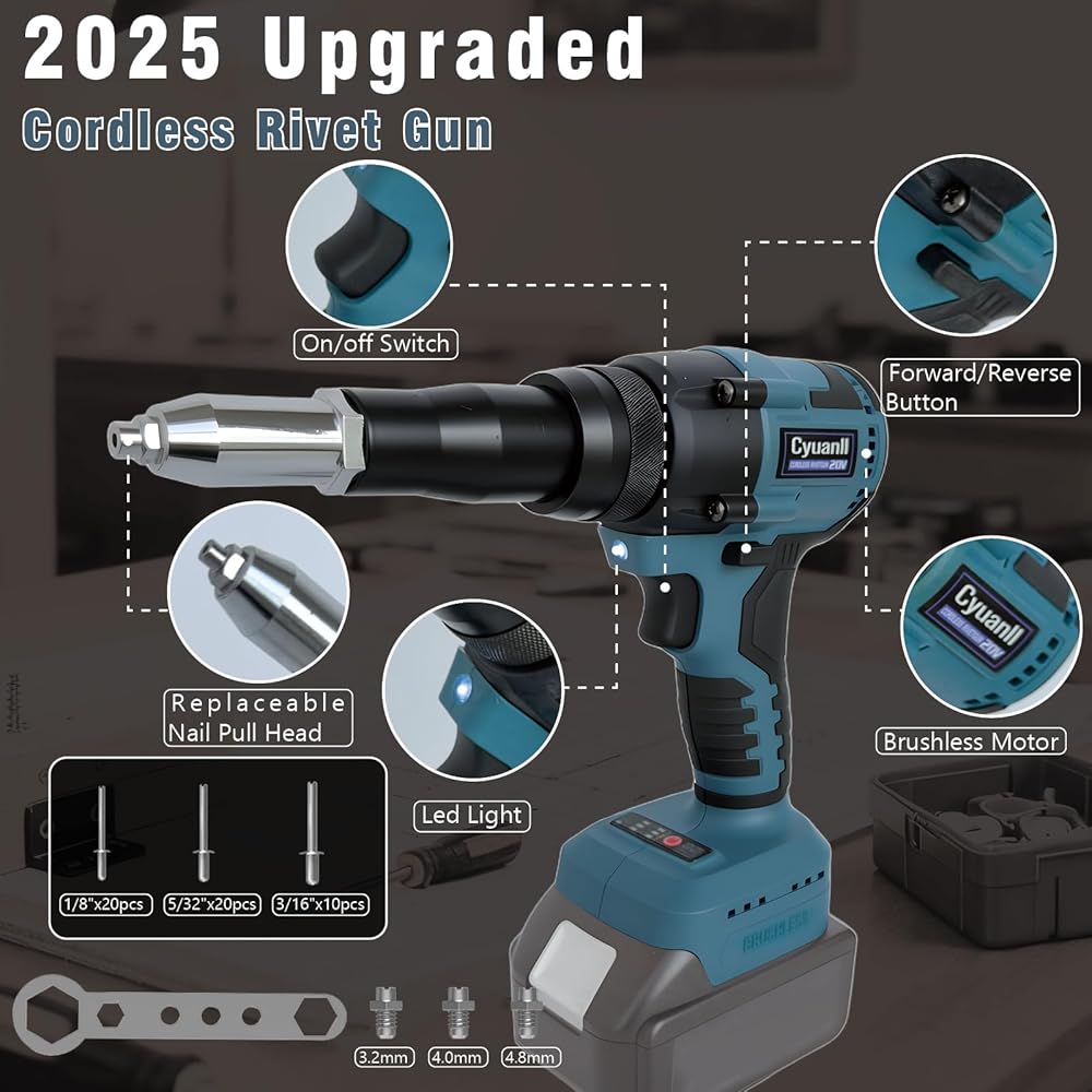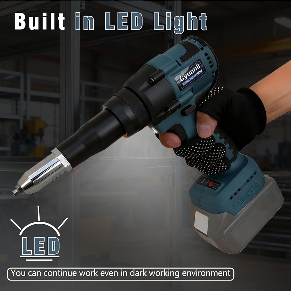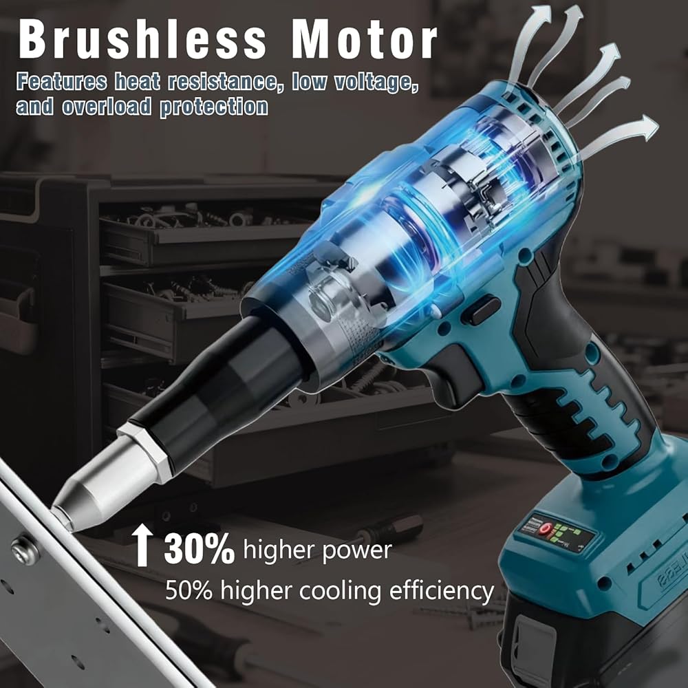 【Brushless Motor】This rivet gun uses brushless motor technology for safer, spark-free operation, higher efficiency, and longer life. Its powerful pulling force makes it easy to handle various riveting tasks, ensuring safe and precise rivets every time.