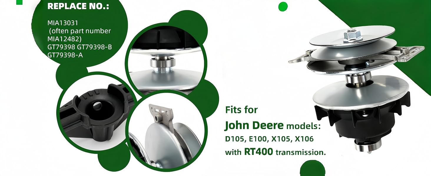 مجموعة البكرة الأساسية MIA13031 تناسب ناقل الحركة RT400 المتوافق مع جزازات طراز John Deere D105 E100 X105 X106 التي تحل محل MIA12481 GT79398-B GT79398-A، GT79398