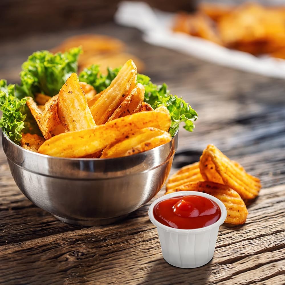 • يمكن استخدام الأكواب الورقية الفردية متعددة الأغراض لتقديم الصلصات والضمادات والهلام ولقطات الجيلي وما إلى ذلك.