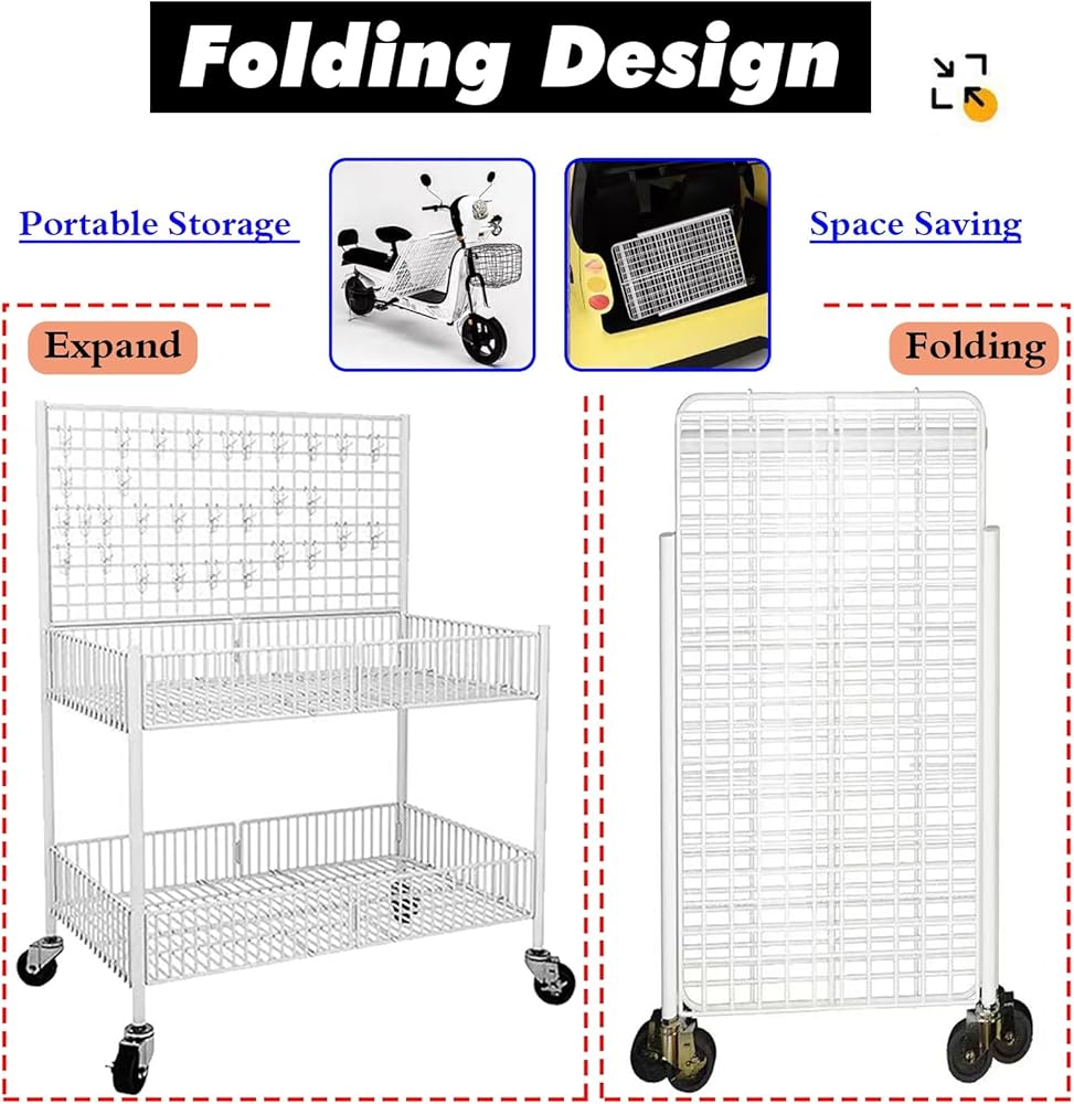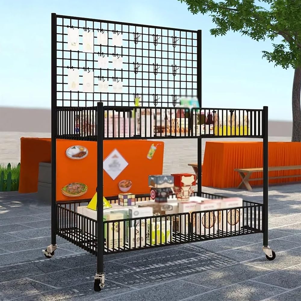 • Versatile Storage & Display The 2-tier design includes a gridwall panel for hanging items and a diamond mesh shelf for storing heavy goods. Includes 10 Gridwall hooks for maximum versatility. Organize and showcase your products with ease, whether it's clothing, tools, or craft supplies