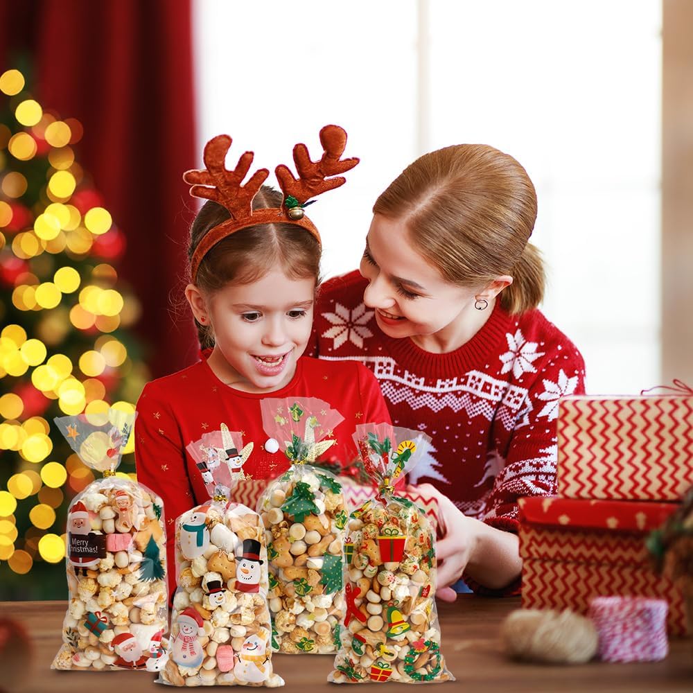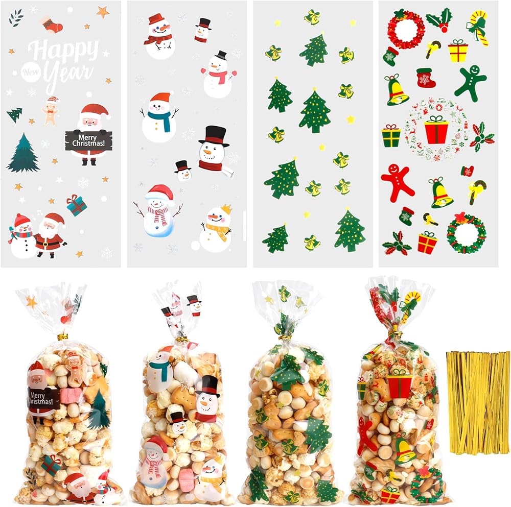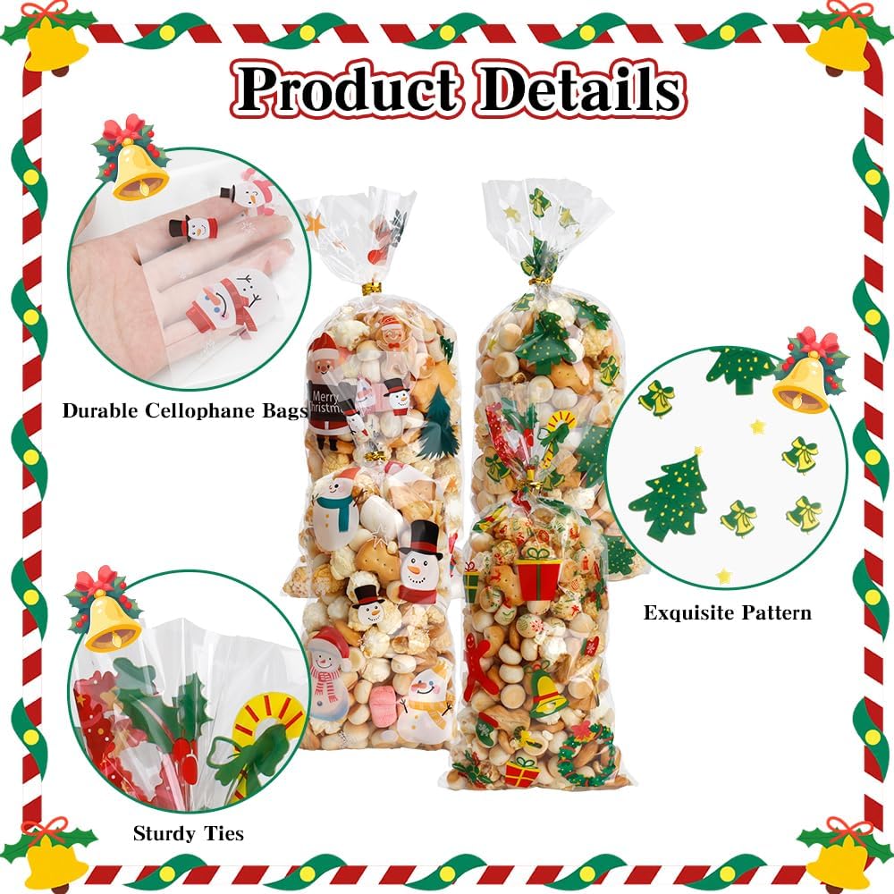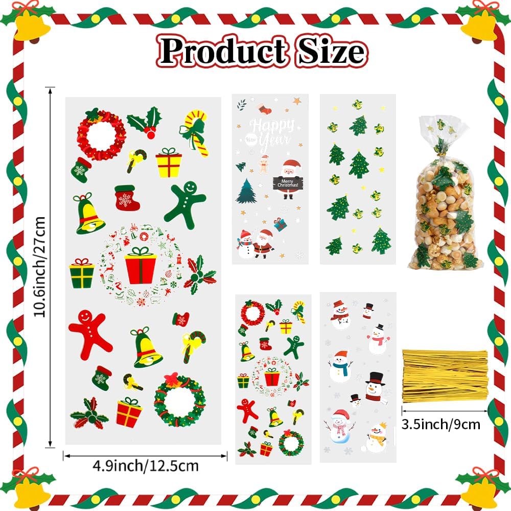 1. Package Including: 100 PCS Christmas Cellophane Treat Bags+100 PCS Twist Ties