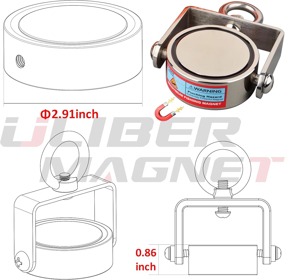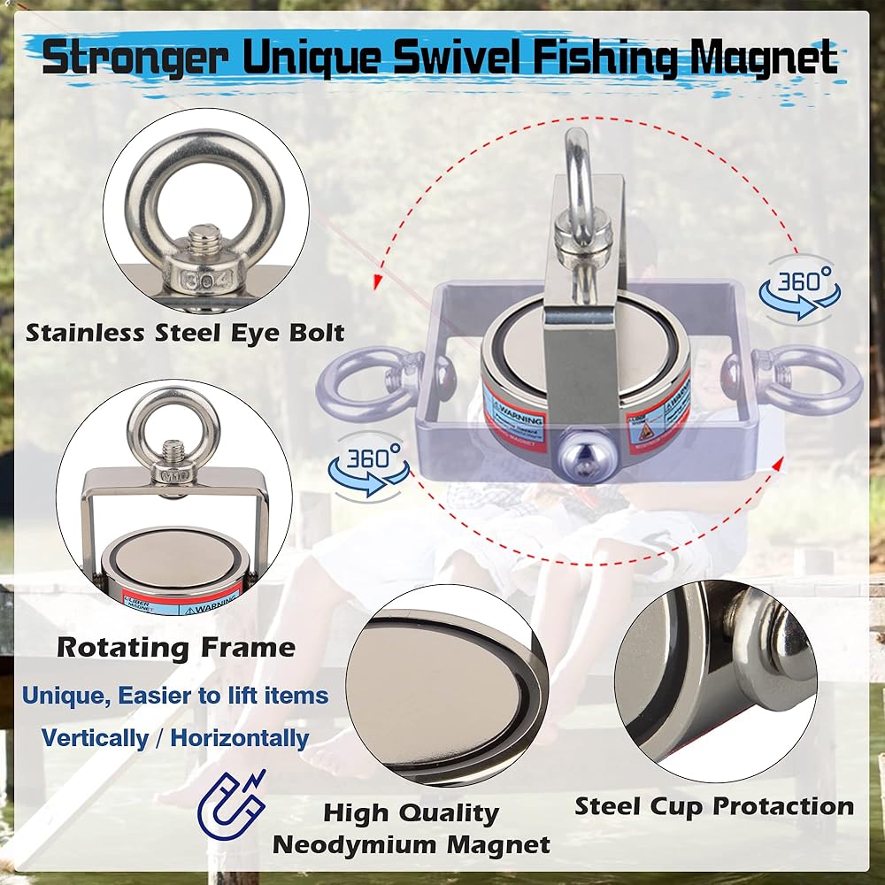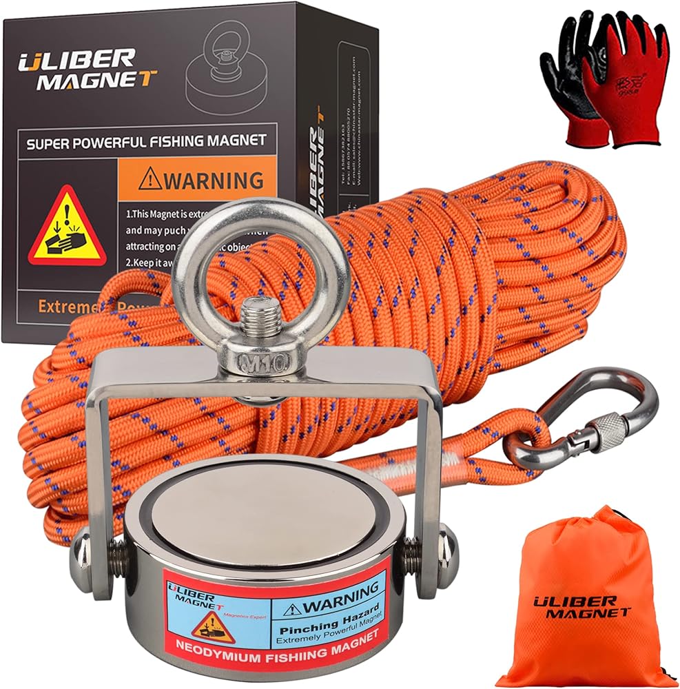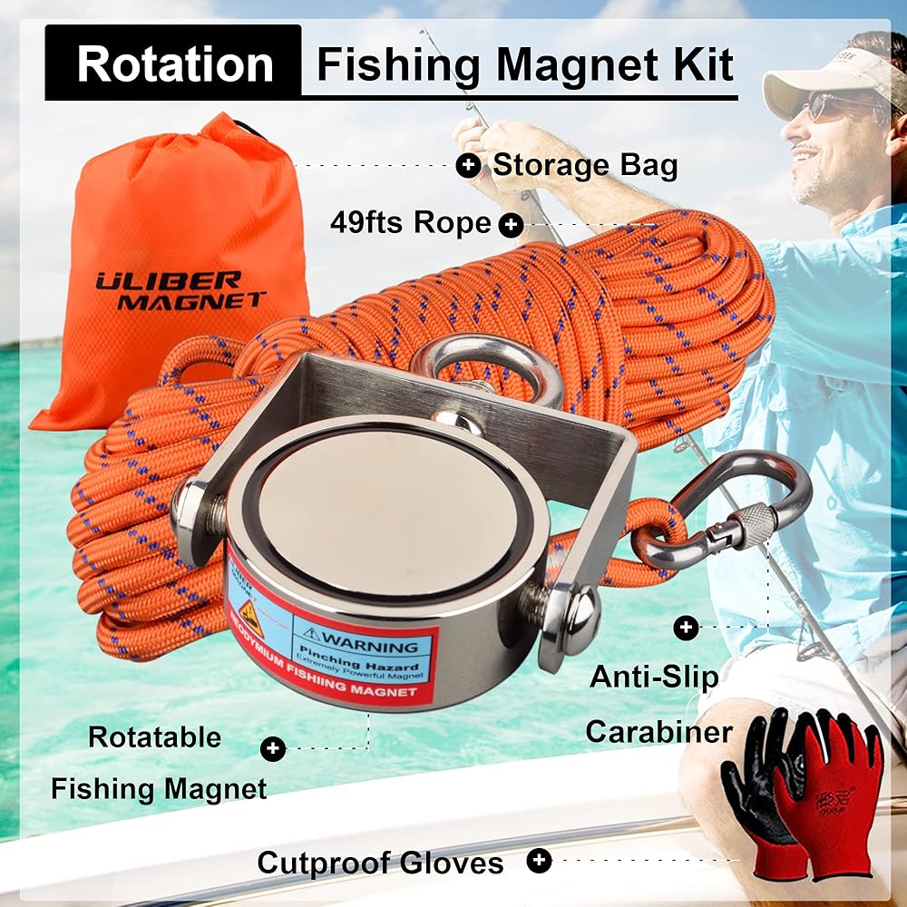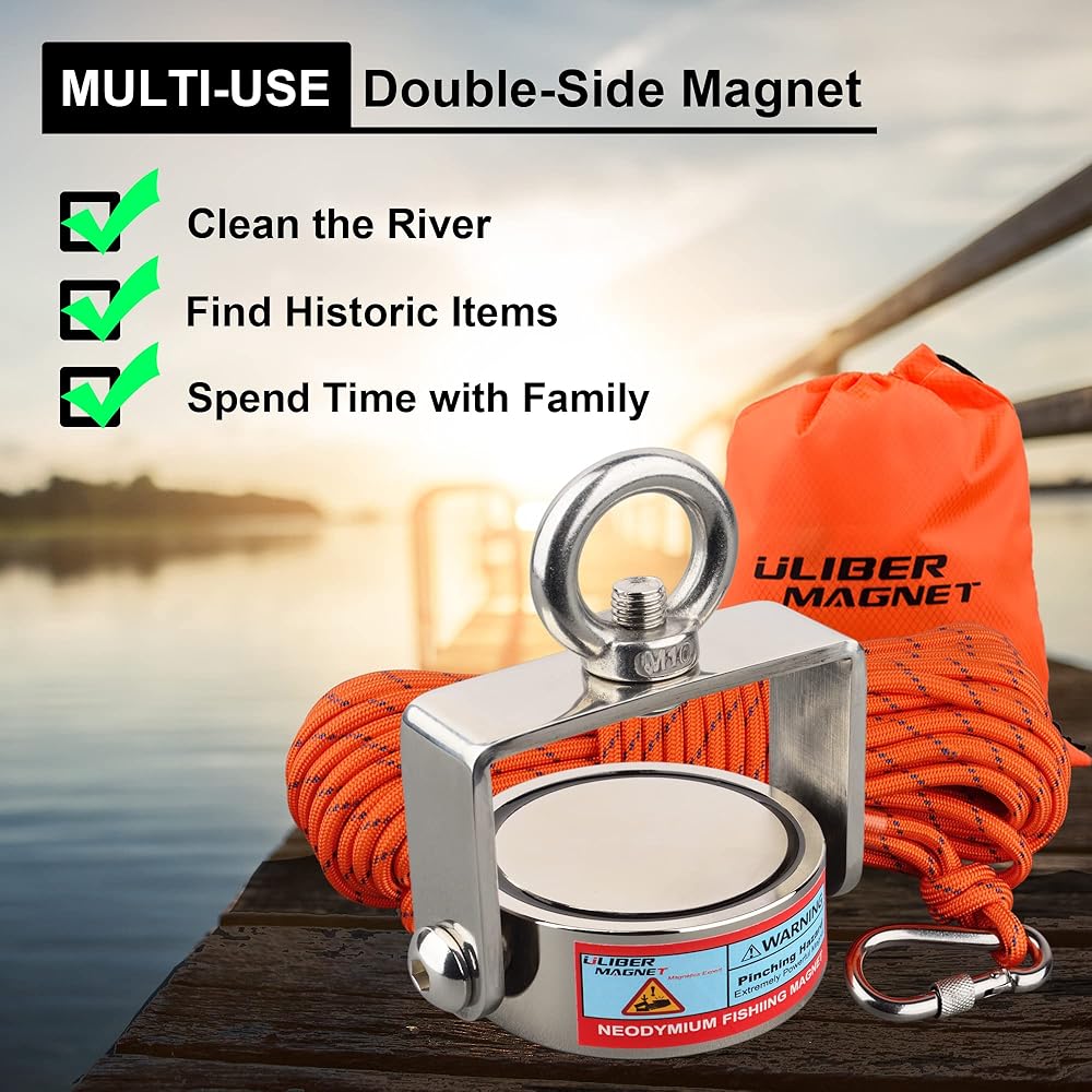 مجموعة مغناطيس الصيد القوية من ULIBERMAGNET، مغناطيس نيوديميوم قابل للدوران، مغناطيس صيد مزدوج الجانب مع حبل، قوة سحب مجتمعة 1200 رطل للإنقاذ والاسترجاع والرفع في النهر والشاطئ والعشب
