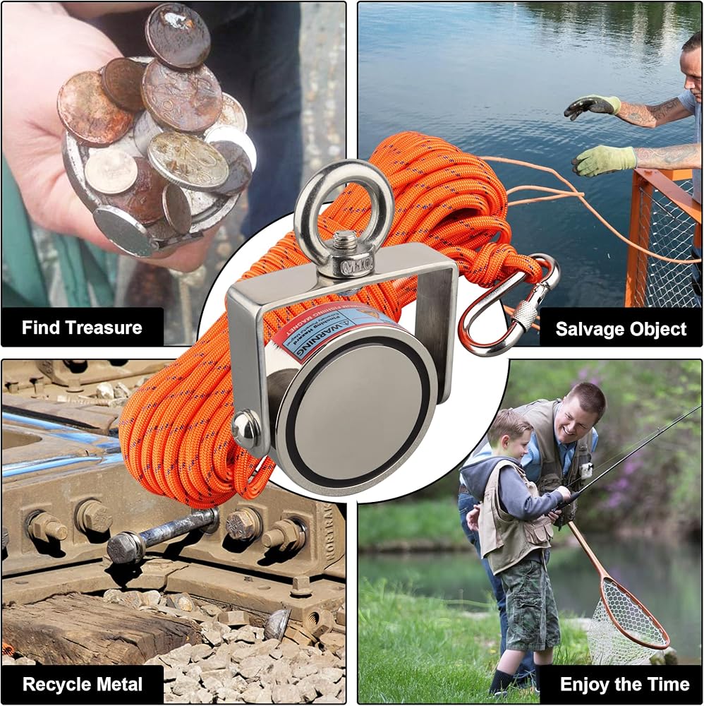 🧲[مغناطيس النيوديميوم للاستخدام على نطاق واسع]: لصيد الكنوز، والإنقاذ تحت الماء، والصيد المغناطيسي في النهر أو البحيرة، والبحث عن شيء قديم وغامض مثل: الآثار الثقافية، والعملات المعدنية، والعثور على بعض الأدوات المعدنية المفقودة في المرآب أو الفناء الخاص بك.