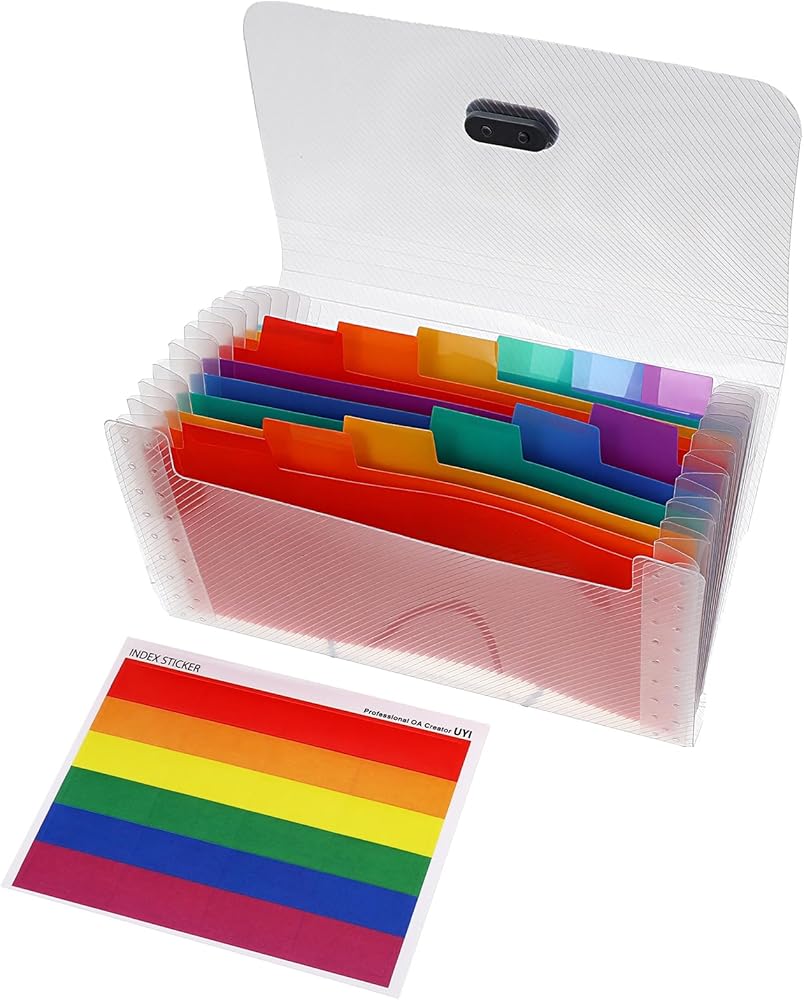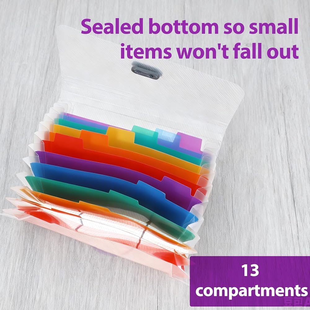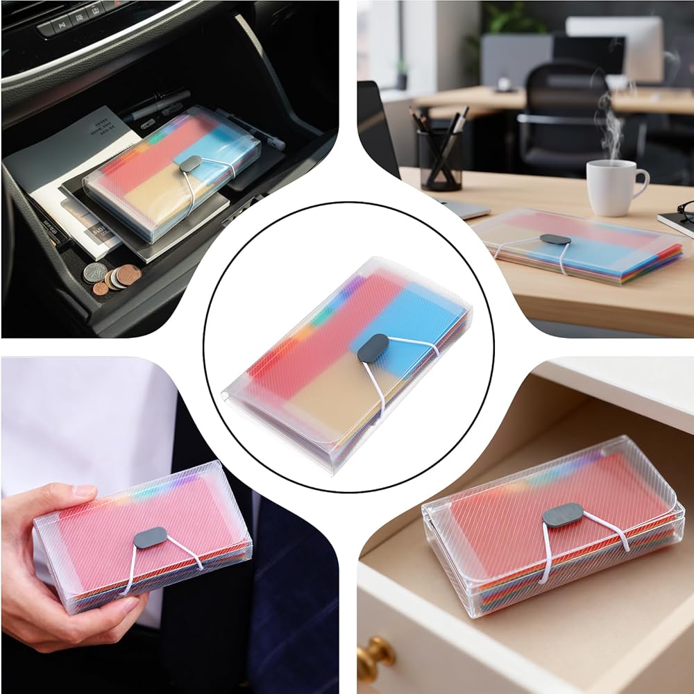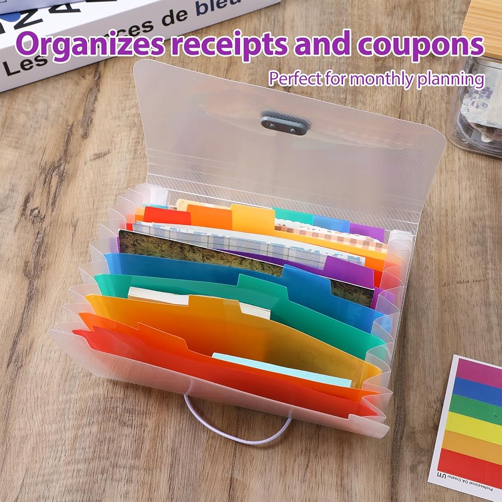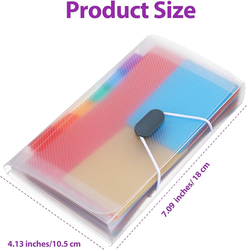 Organize your documents with ease using our vibrant accordion folder, designed to keep your receipts, coupons, and tickets neatly sorted. This small accordion file organizer is perfect for those who need a compact yet efficient solution for document storage.