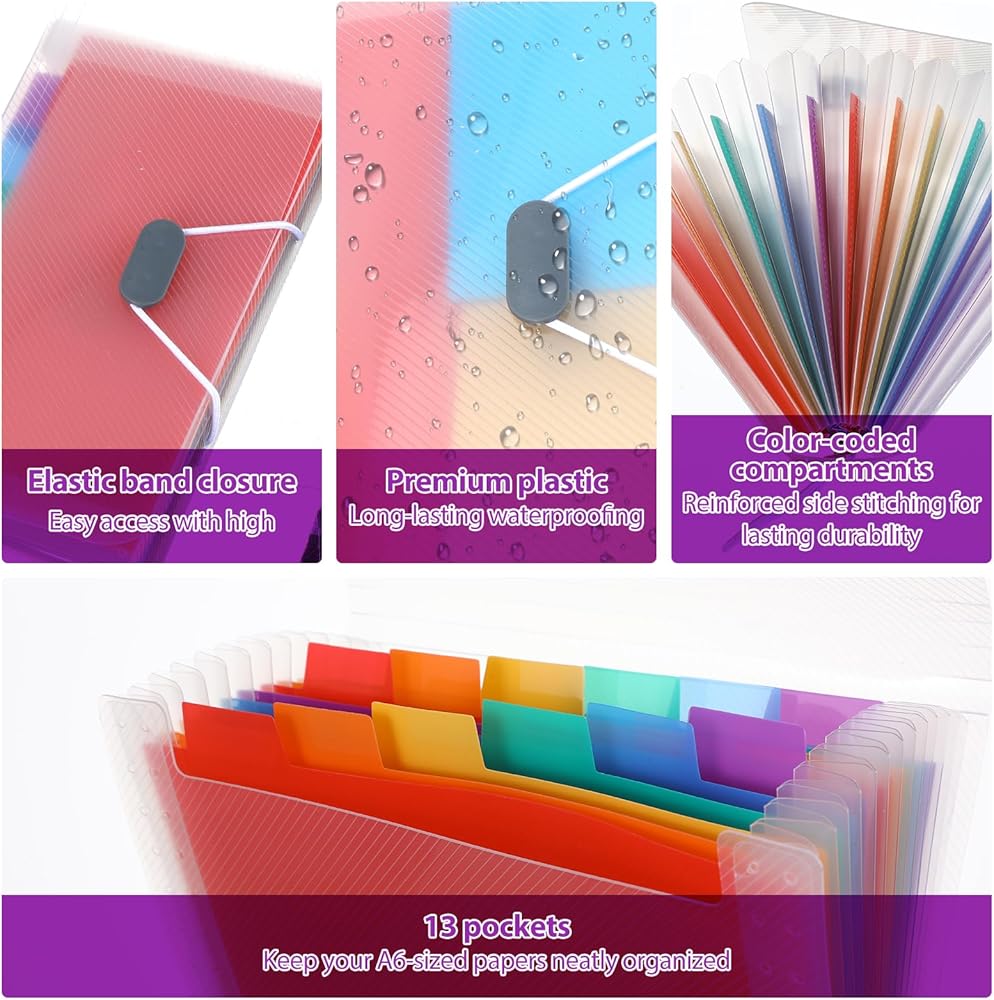1. Accordion Folder Design: The mini expanding file folder features 13 pockets, allowing for easy subdivision and indexing of your documents. Perfect for organizing A6-sized papers.