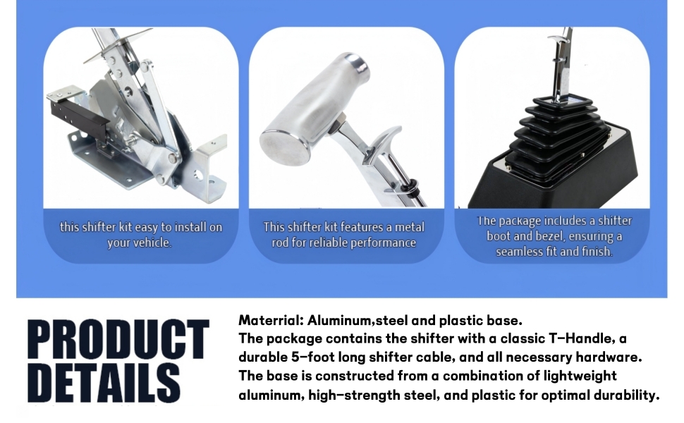 مجموعة التثبيت الكاملة: تتضمن مقبض T كلاسيكي وكابل ناقل الحركة عالي الجودة بطول 5 أقدام لتركيب نظيف واحترافي مصنوع من مزيج متين من الألومنيوم والفولاذ والمكونات البلاستيكية عالية القوة.