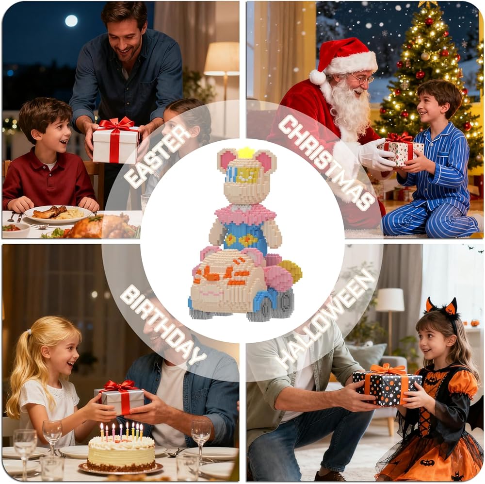 【ديكور أنيق للمنزل والمكتب】مجموعة مكعبات بناء الدب فاشن تمثل إضافة ساحرة تدوم طويلاً لأي غرفة أو مكان عمل. اختر من بين مجموعة متنوعة من تصميمات الدب التي تناسب ذوقك وتعزز ديكورك وتضفي لمسة من الألوان على البيئة المحيطة بك.