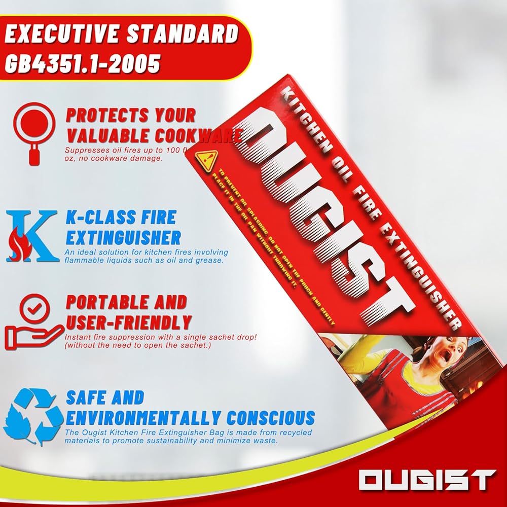 • طفاية حريق من فئة K: تم تصميم كيس طفاية الحريق من Ougist خصيصًا للتعامل مع حرائق من فئة K، مما يجعله الحل الأمثل لحرائق المطبخ التي تحتوي على سوائل قابلة للاشتعال مثل الزيوت والشحوم. قم بحماية منزلك وأحبائك باستخدام أداة السلامة من الحرائق المخصصة هذه.