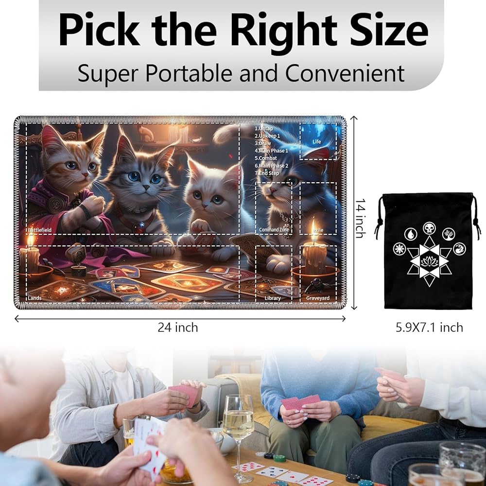 【حجم مثالي للعب】: يبلغ مقاس بساط اللعب MTG 24 × 14 بوصة (60 سم × 35 سم)، مما يوفر مساحة واسعة لسحرك: جلسات التجمع أو TCG (لعبة بطاقات التداول). يبلغ مقاس حقيبة تخزين البطاقات المتضمنة 5.9 × 7.1 بوصة (15 × 18 سم)، مما يوفر تخزينًا مناسبًا لبطاقاتك وملحقاتك.