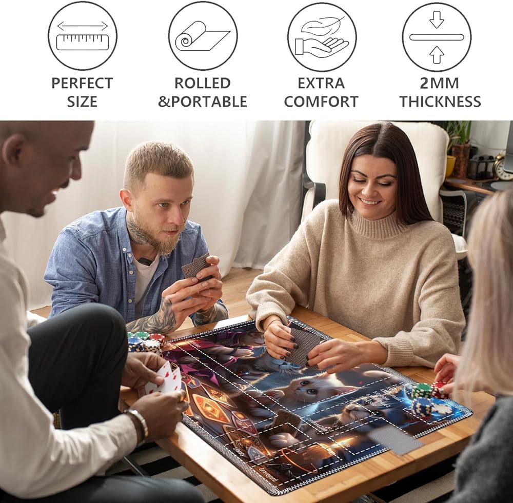 【قاعدة مطاطية مضادة للانزلاق من أجل الثبات】: تتميز بظهر مطاطي مانع للانزلاق، تبقى حصيرة اللعب MTG هذه ثابتة في مكانها، حتى أثناء معارك البطاقات المكثفة. يضمن الأساس المستقر عدم تغير حصيرة اللعب الخاصة بك، مما يوفر تجربة لعب ثابتة وممتعة لـ Magic the Gathering أو TCGs الأخرى.