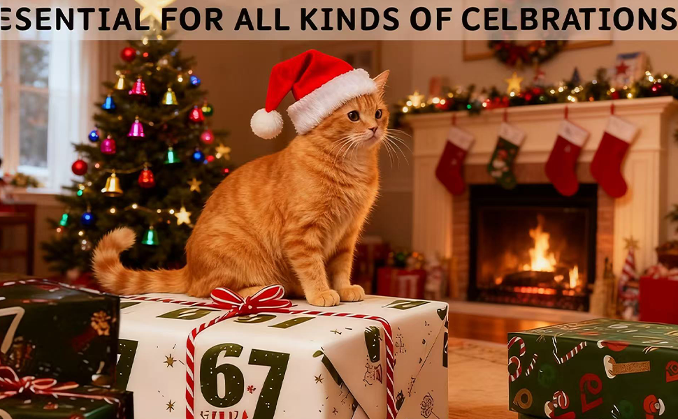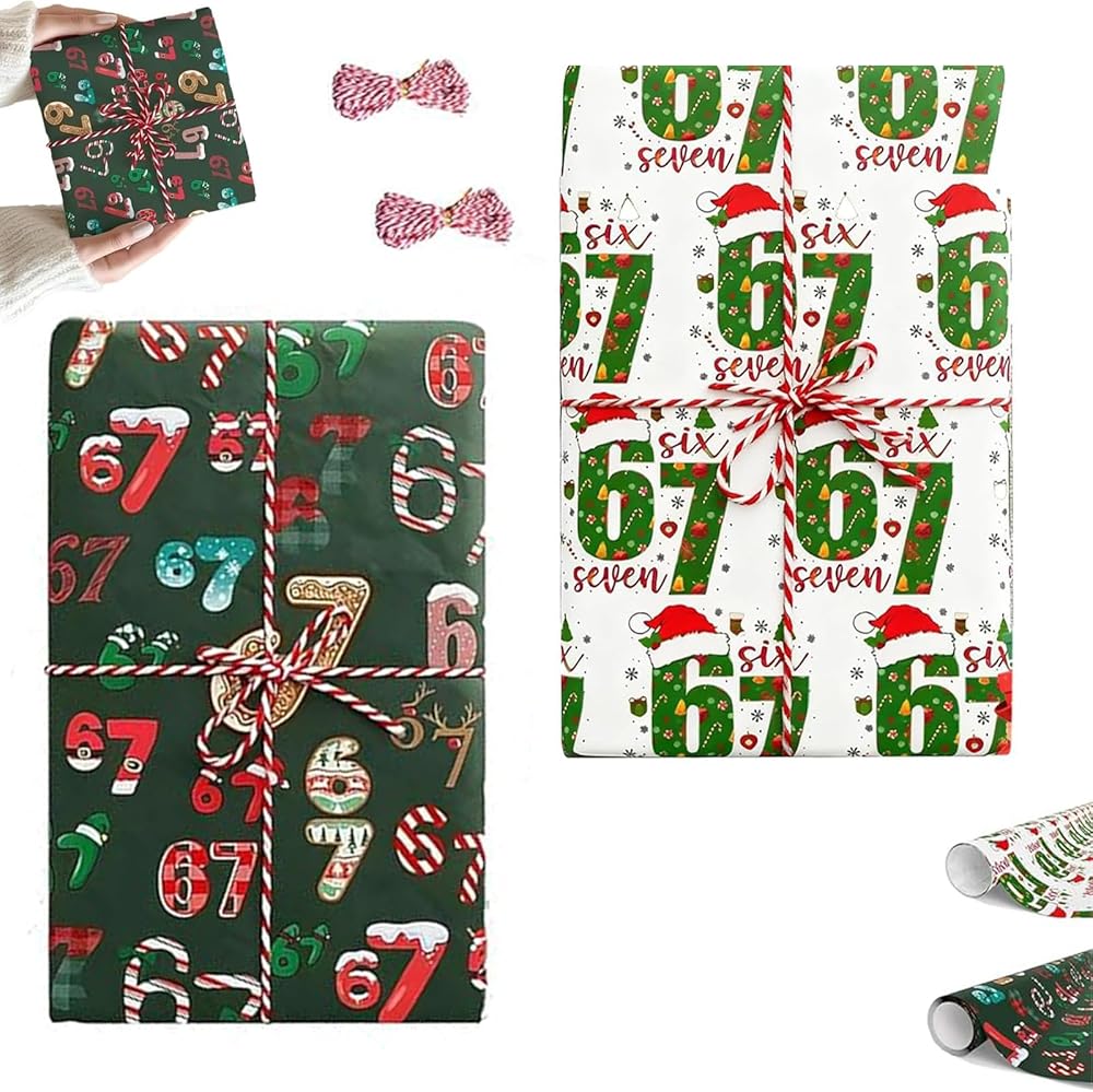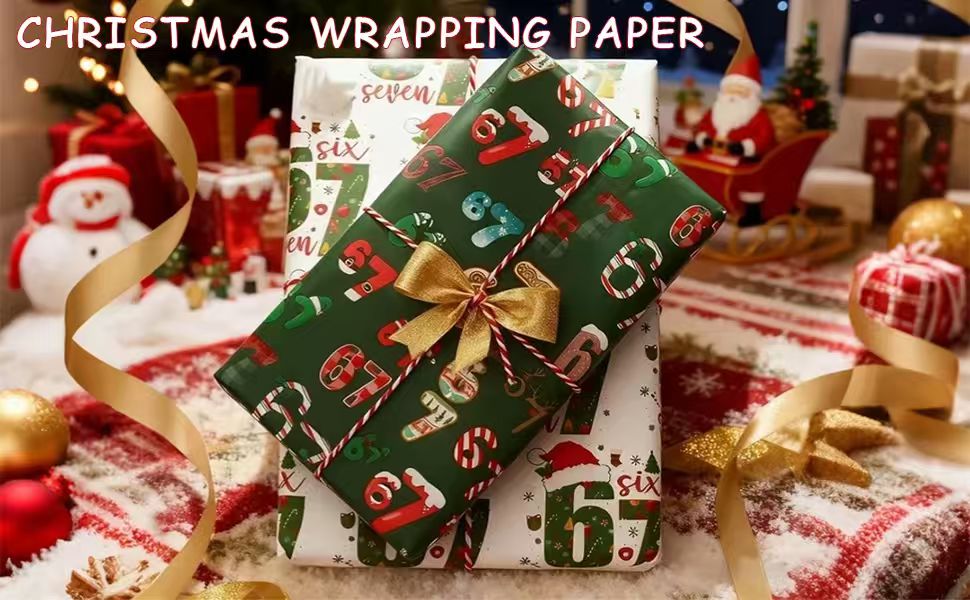 【غلاف هدايا عيد الميلاد】يتميز ورق تغليف عيد الميلاد هذا بأنماط أرقام "67" لافتة للنظر، مما يضيف لمسة ممتعة إلى هدية عطلتك. إنها تجعل هداياك تبرز تحت الشجرة وتجلب السعادة للمتلقين من جميع الأعمار دون عناء!