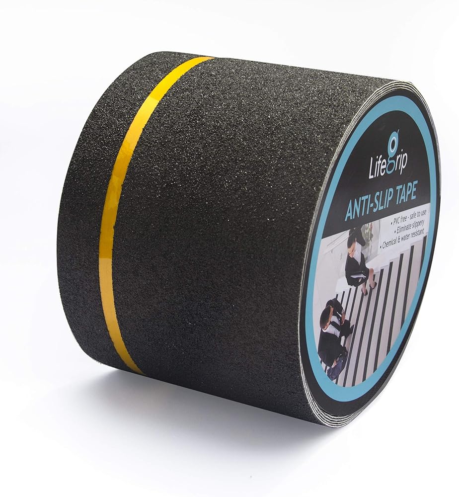 شريط جر مضاد للانزلاق من LifeGrip مع شريط عاكس، 4 بوصة × 30 قدم، أفضل شريط قبضة غير قابل للانزلاق، مداس خارجي غير قابل للانزلاق، لاصق كاشط عالي الاحتكاك لخطوات السلالم، أسود