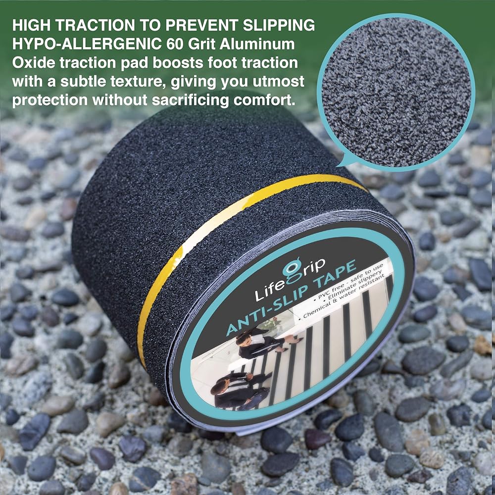 متعدد الوظائف: منتج أمان متعدد الوظائف وفعال من حيث التكلفة. شريط أمان LifeGrip مضاد للانزلاق مقاس 4 بوصات × 30 قدمًا مع شريط عاكس أصفر. في ظروف الإضاءة المنخفضة حيث لا تزال الأشياء مرئية، سيعكس الشريط العاكس الضوء ويساعد على جذب عين أي شخص قريب، محذرًا من المخاطر المحتملة مثل الحواف أو الخطوات.