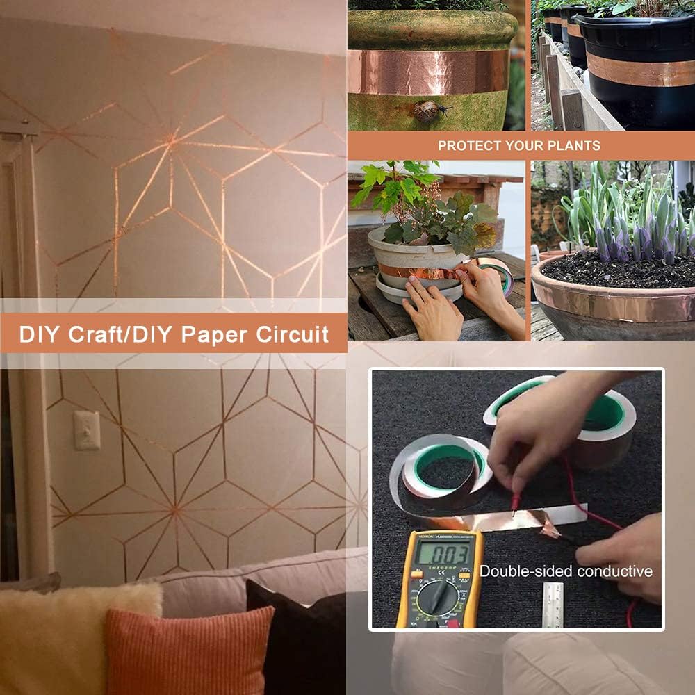• الكمية: تأتي العبوة مع 4 قطع من أشرطة رقائق النحاس الموصلة، يبلغ حجم كل شريط نحاسي حوالي 1/4 انش × 21.8 ياردة