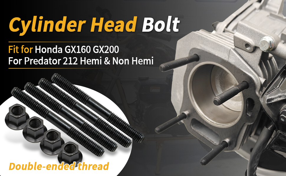 طقم مسامير رأس أسطوانة عالية الأداء لأجزاء أداء Predator 212 لهوندا GX200 GX160 من سبائك الصلب مع صواميل شفة سميكة عالية القوة لـ CT200U لـ Tillotson 196-225