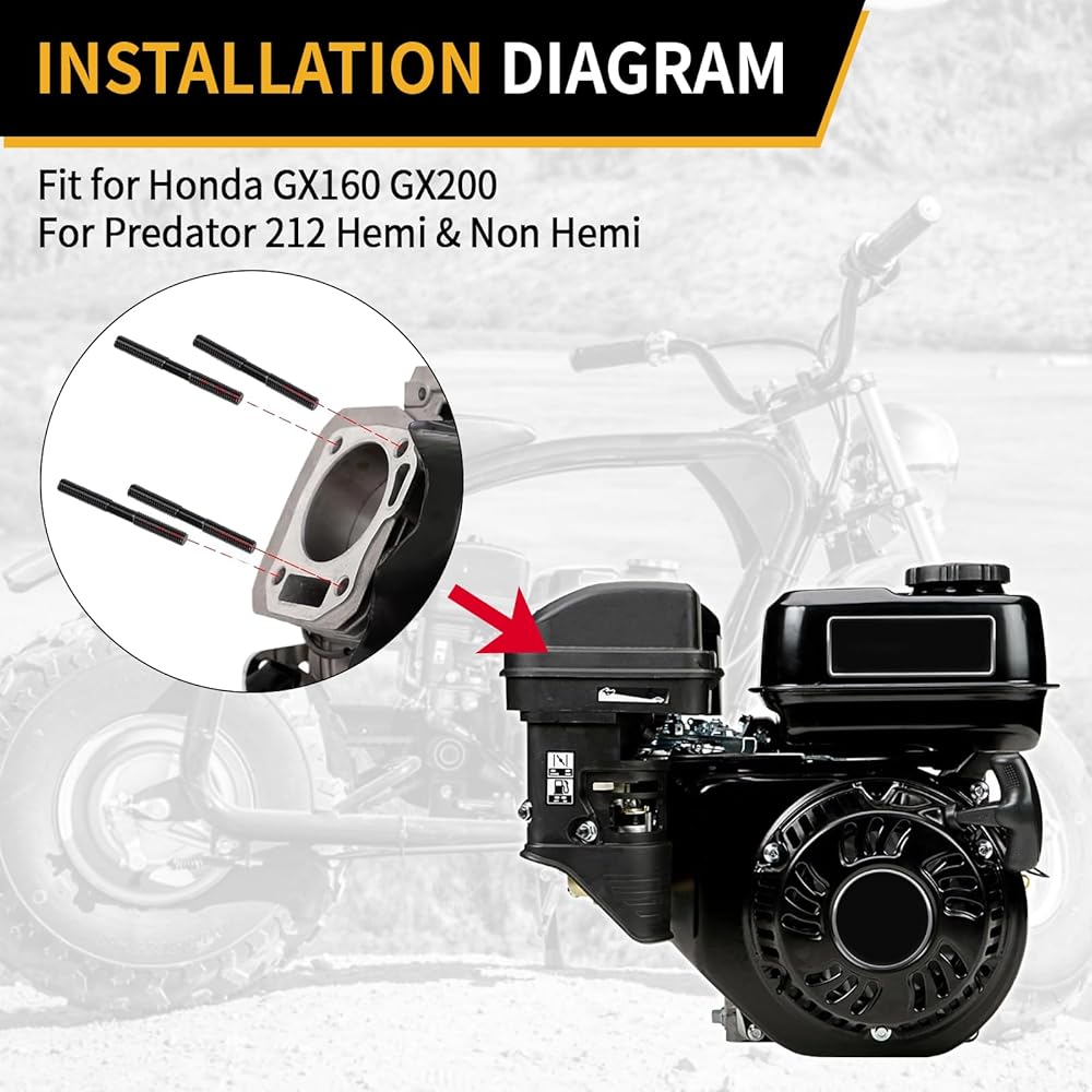 • قدرة واسعة على التكيف: قم بتبديل مسامير رأس المخزون لهوندا GX200 لـ Predator 212 Hemi وNon Hemi لـ Tillotson 196-225 لـ Ducar 196/212 وجميع الحيوانات المستنسخة 196cc 212cc