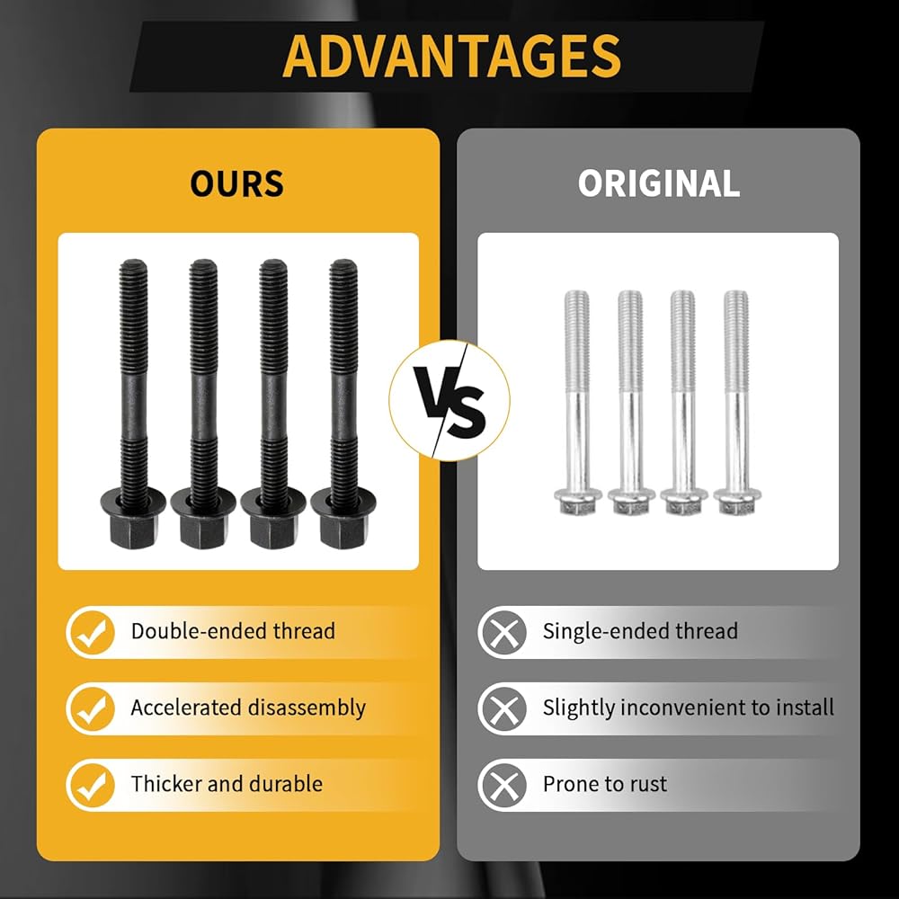 • مجموعة مسامير رأس الأداء: ترقية لمحركات السباق عالية الإنتاج أكثر سمكًا، ومسامير مقاومة للتمدد توقف فشل حشية الرأس وتلف المحرك الباهظ الناتج عن مسامير OEM الممتدة