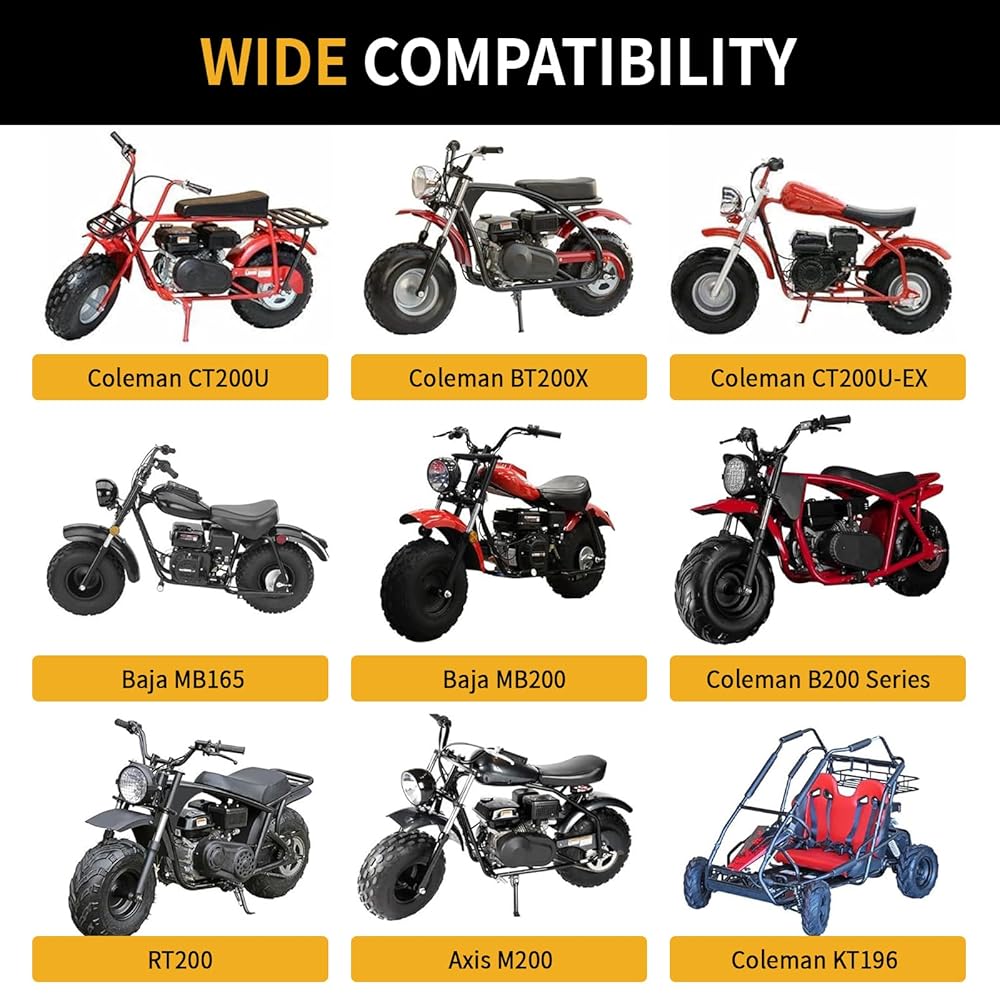 • التوافق: للدراجة الصغيرة كولمان B200 B200RS B200RSV B200R B200C B200V؛ KT196 CK196-T جو كارت 200CC; لباجا MB165 وMB200 (هيت؛ ميني باجا؛ واريور) لماسيمو MB200؛ ريالتري* RT200; أكسي* M200 إلخ.